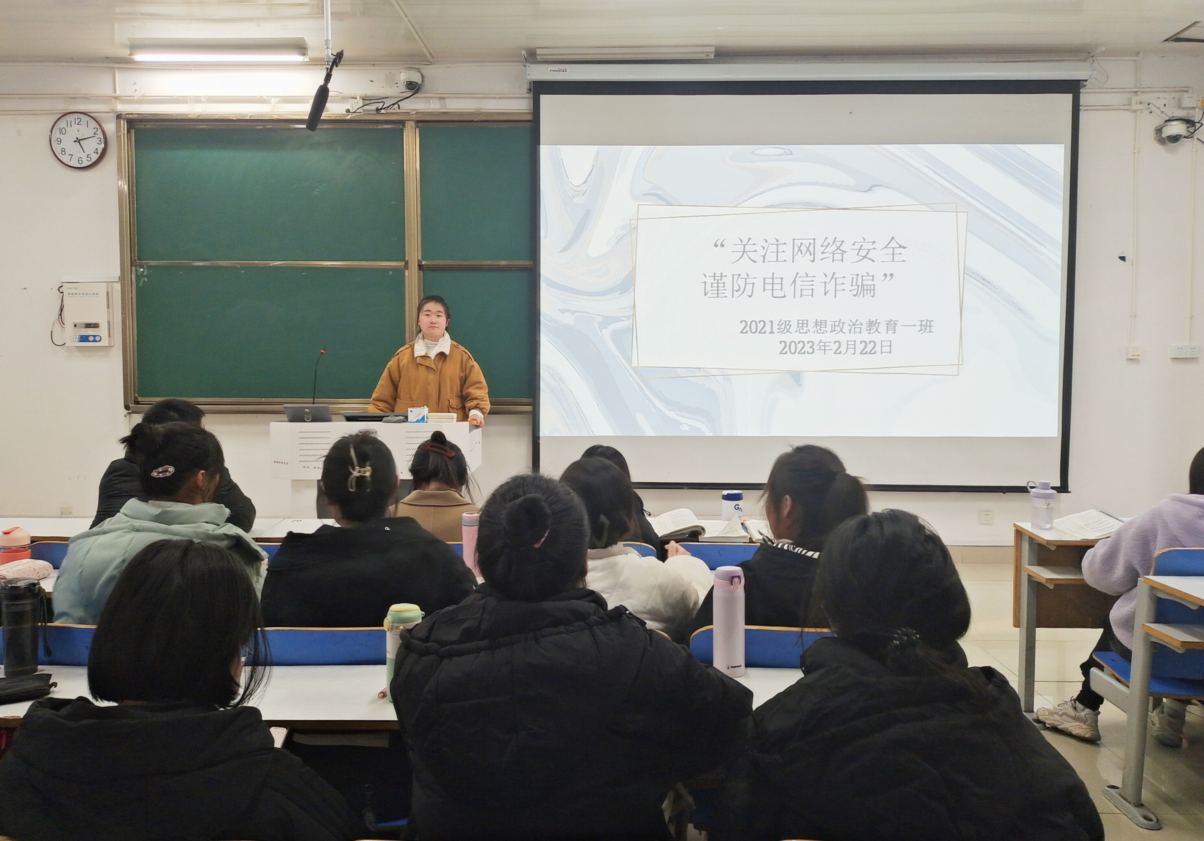 为进一步提高同学们对电信网络诈骗的防范意识,增强防范网络诈骗能力。2月22日下午,beat365亚洲版官网2021级思想政治教育一班在社科楼514教室召开“关注网络安全,谨防电信诈骗”主题班会。2021级思想政治教育一班全体成员共同参加本次班会。班会由副班长雷敏主持。