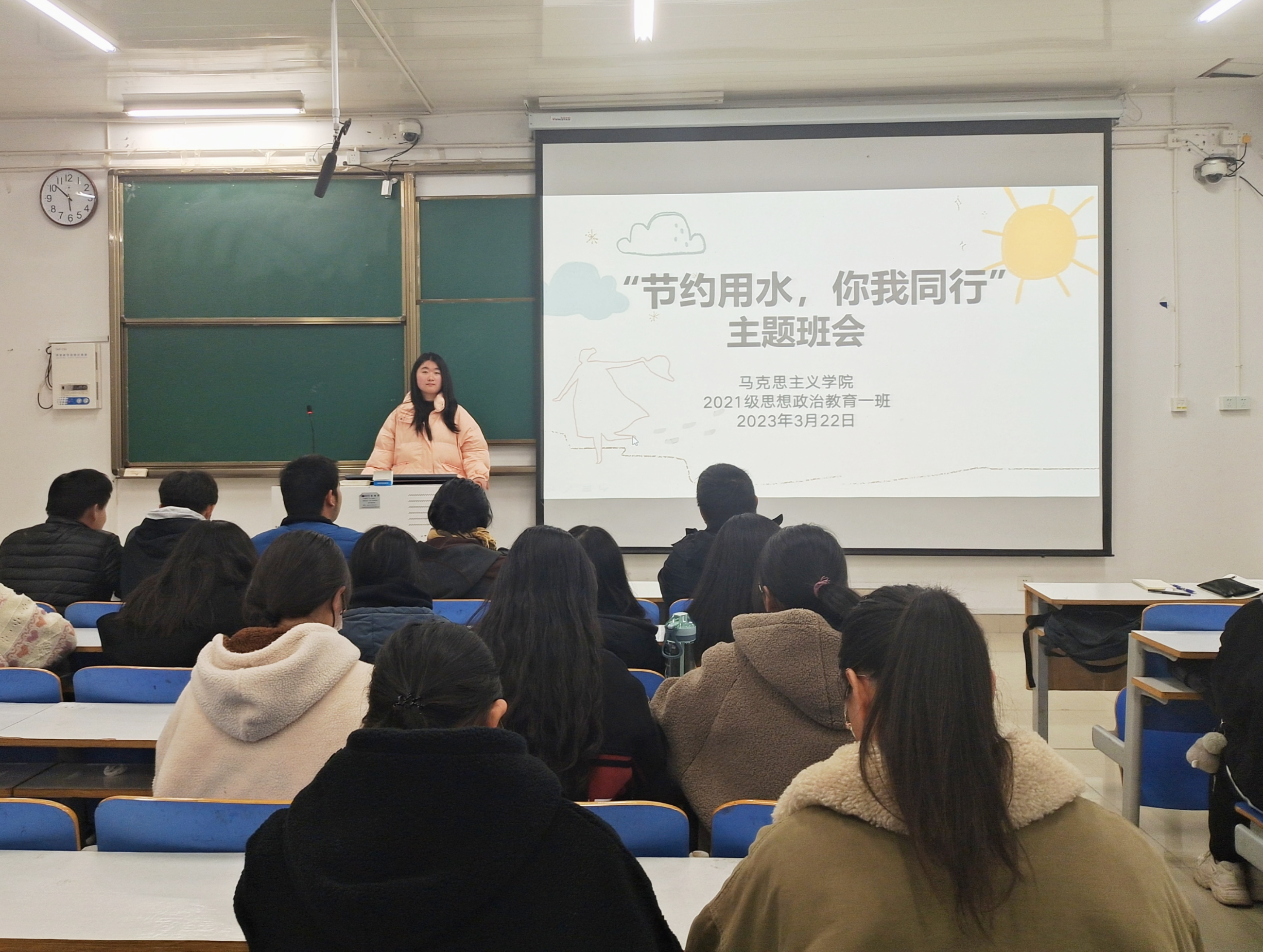 为培育学生养成节约用水的良好习惯,树立生态环境保护意识。3月22日下午,beat365亚洲版官网2021级思想政治教育一班在社科楼514教室召开“节约用水,你我同行”主题班会。2021级思想政治教育一班全体成员共同参与本次班会。班会由副班长雷敏主持。