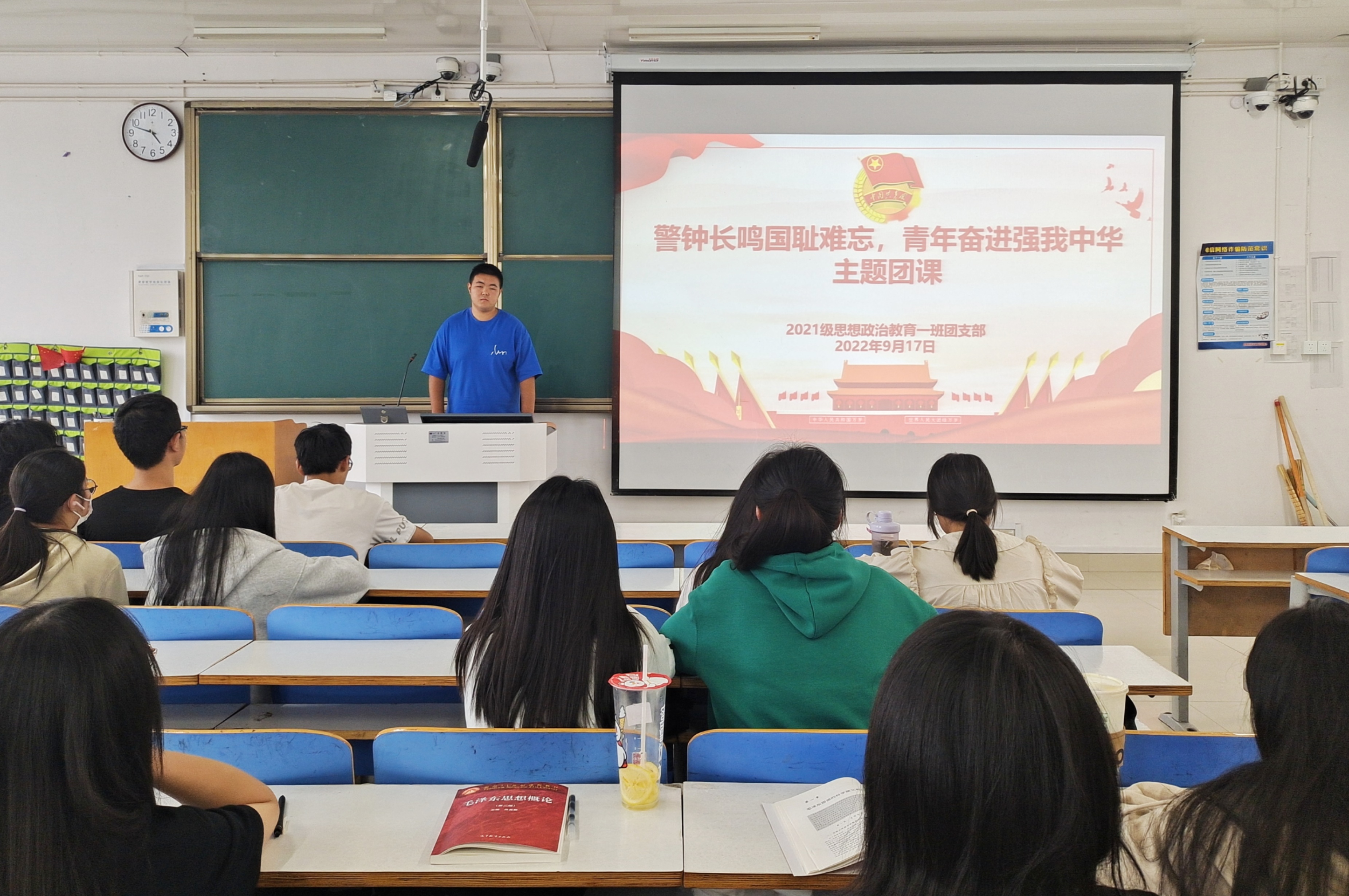 9月17日下午,beat365亚洲版官网2021级思想政治教育一班在社科楼514教室召开“警钟长鸣国耻难忘,青年奋进强我中华”主题团课。2021级思想政治教育一班全体团员共同参加了本次团课,团课由团支书戴翰林主持。