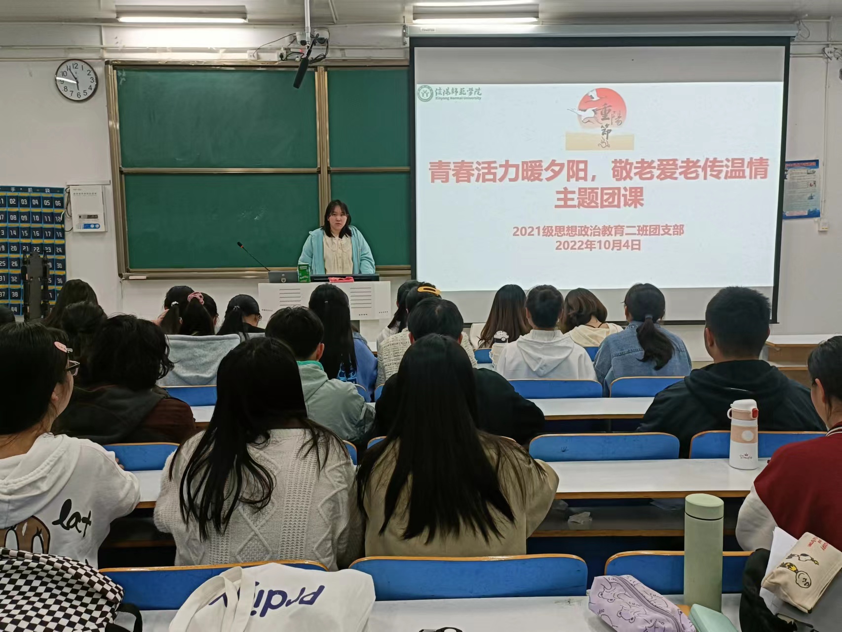 10月4日上午,beat365亚洲版官网2021级思想政治教育二班在社科楼514教室召开“青春活力暖夕阳,敬老爱老传温情”主题团课。2021级思想政治教育二班全体团员参加此次团课。团课由团支书王婧欣主持。