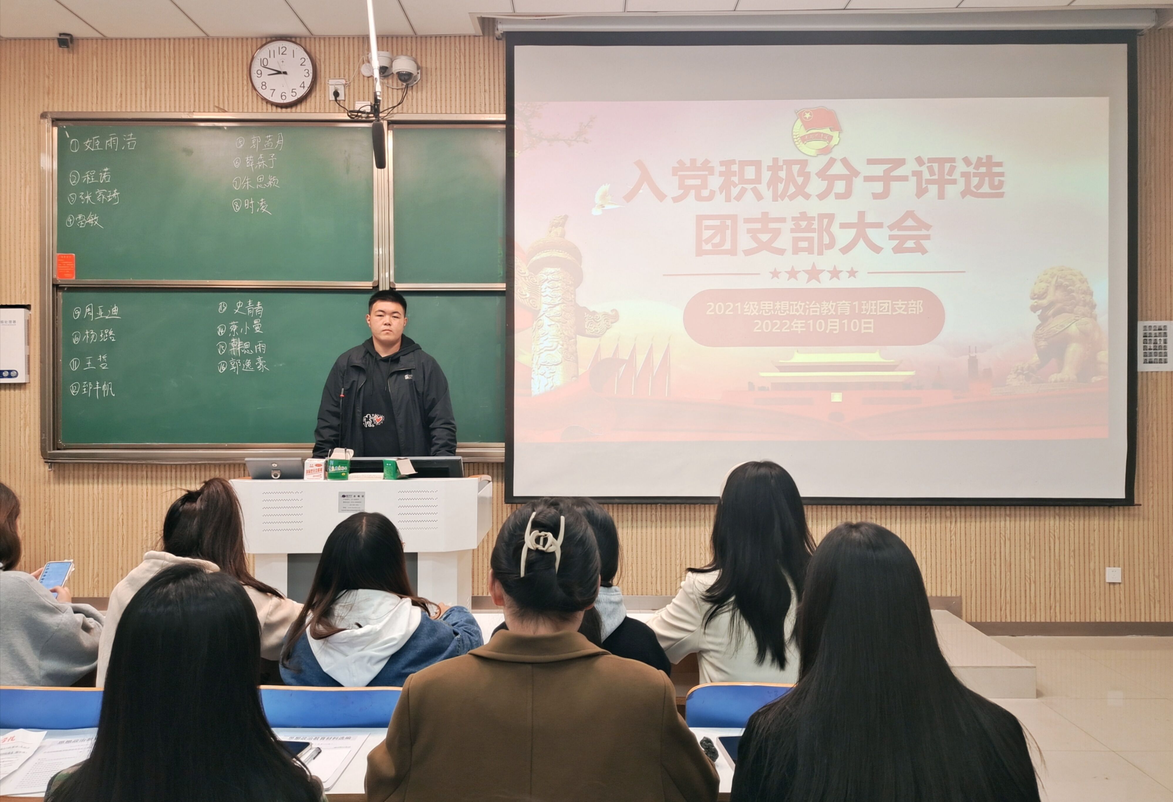 10月10日下午,beat365亚洲版官网2021级思想政治教育一班在社科楼515教室召开入党积极分子评选团支部大会。2021级思想政治教育一班全体团员共同参加了本次会议。会议由团支书戴翰林主持。