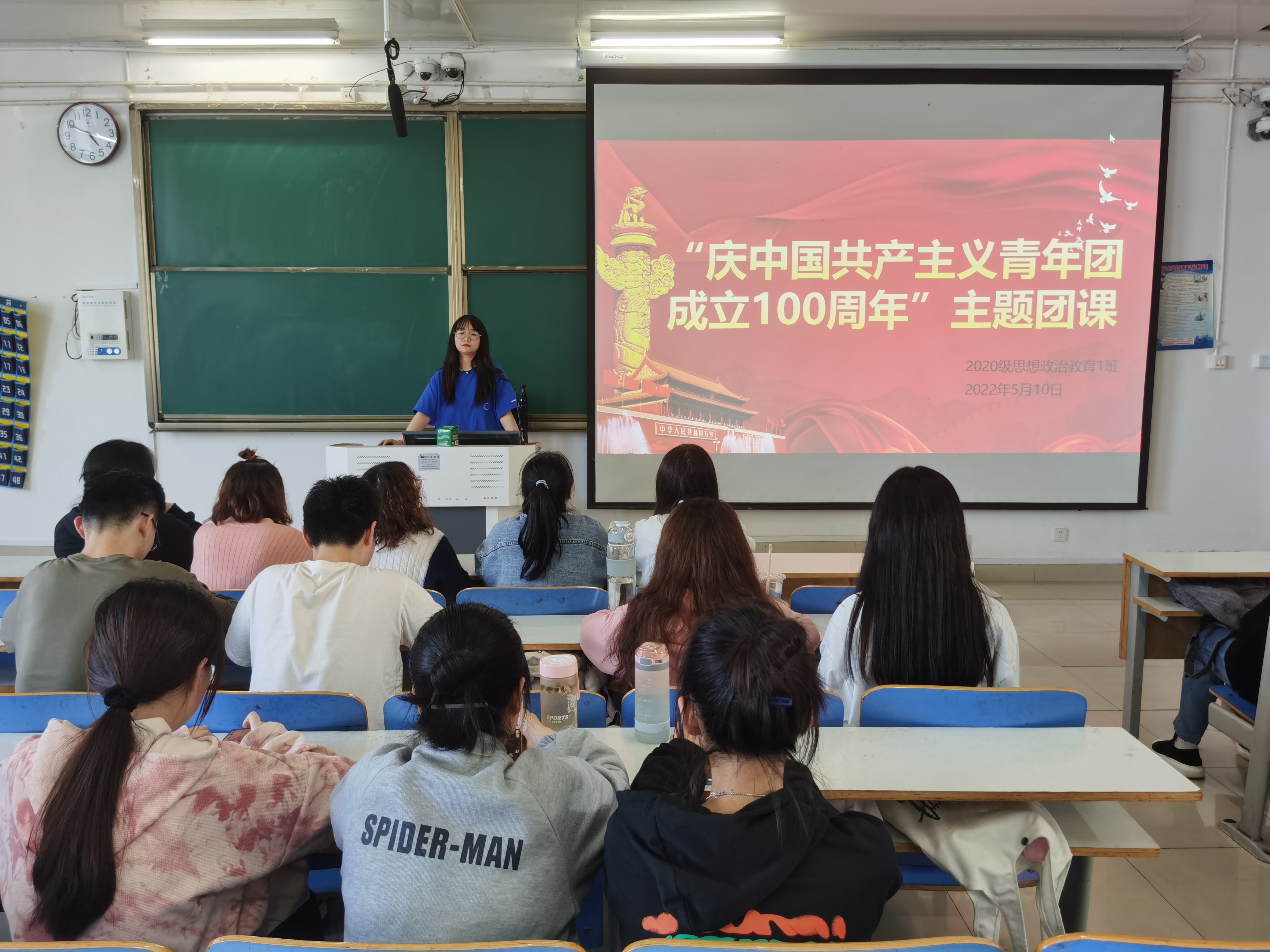 5月10日上午,beat365亚洲版官网2020级思想政治教育一班团支部全体团员在社科楼514教室一同观看了庆祝中国共产主义青年团成立一百周年大会。