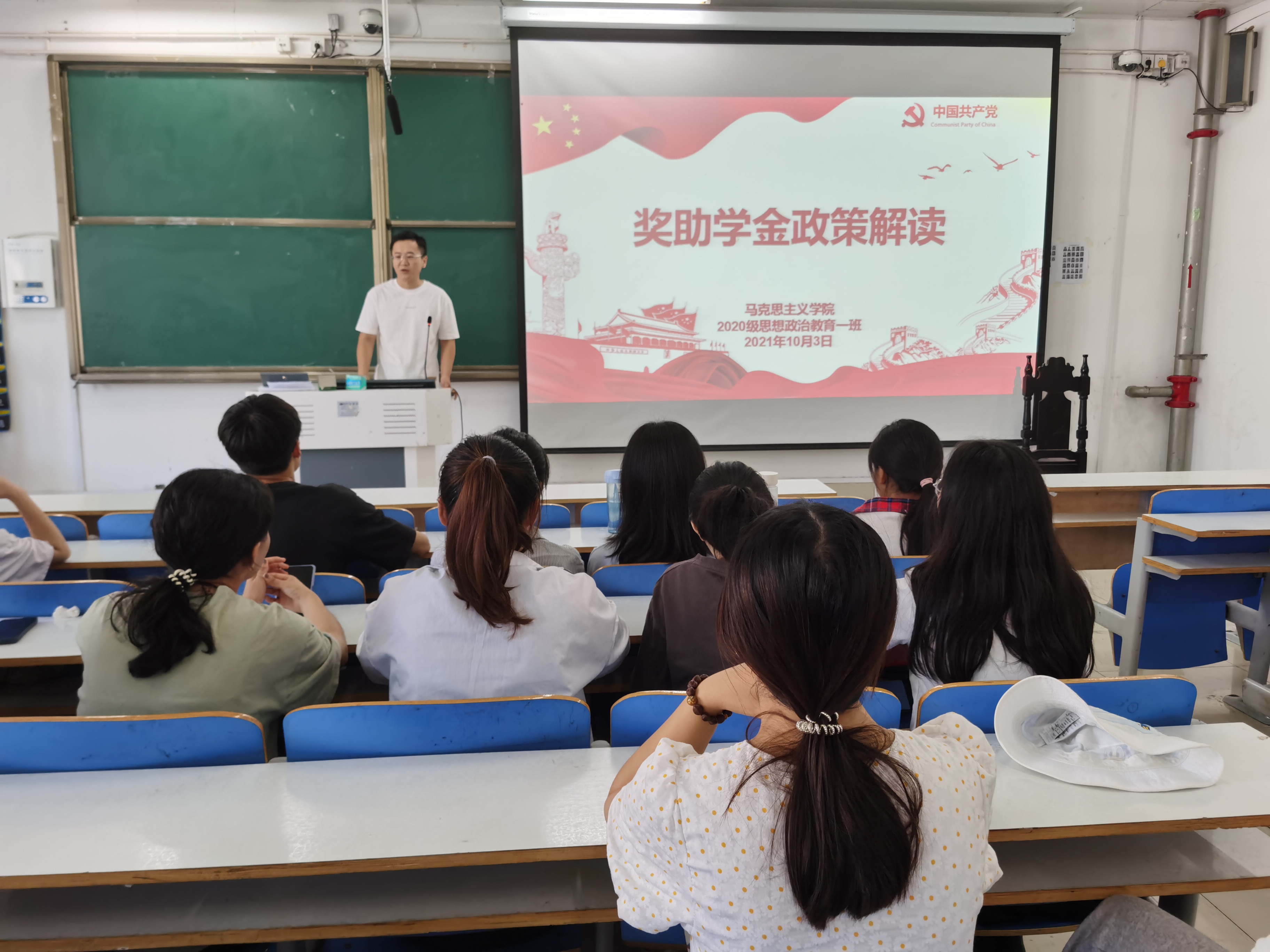 为准确传达奖助学金政策精神,10月3号上午,2020级思想政治教育一班、定向一班在社科楼516教室顺利召开“奖助学金政策解读”主题班会。2020级思想政治教育一班、定向一班全体学生共同参加了本次班会,本次班会由辅导员曹栋主持。