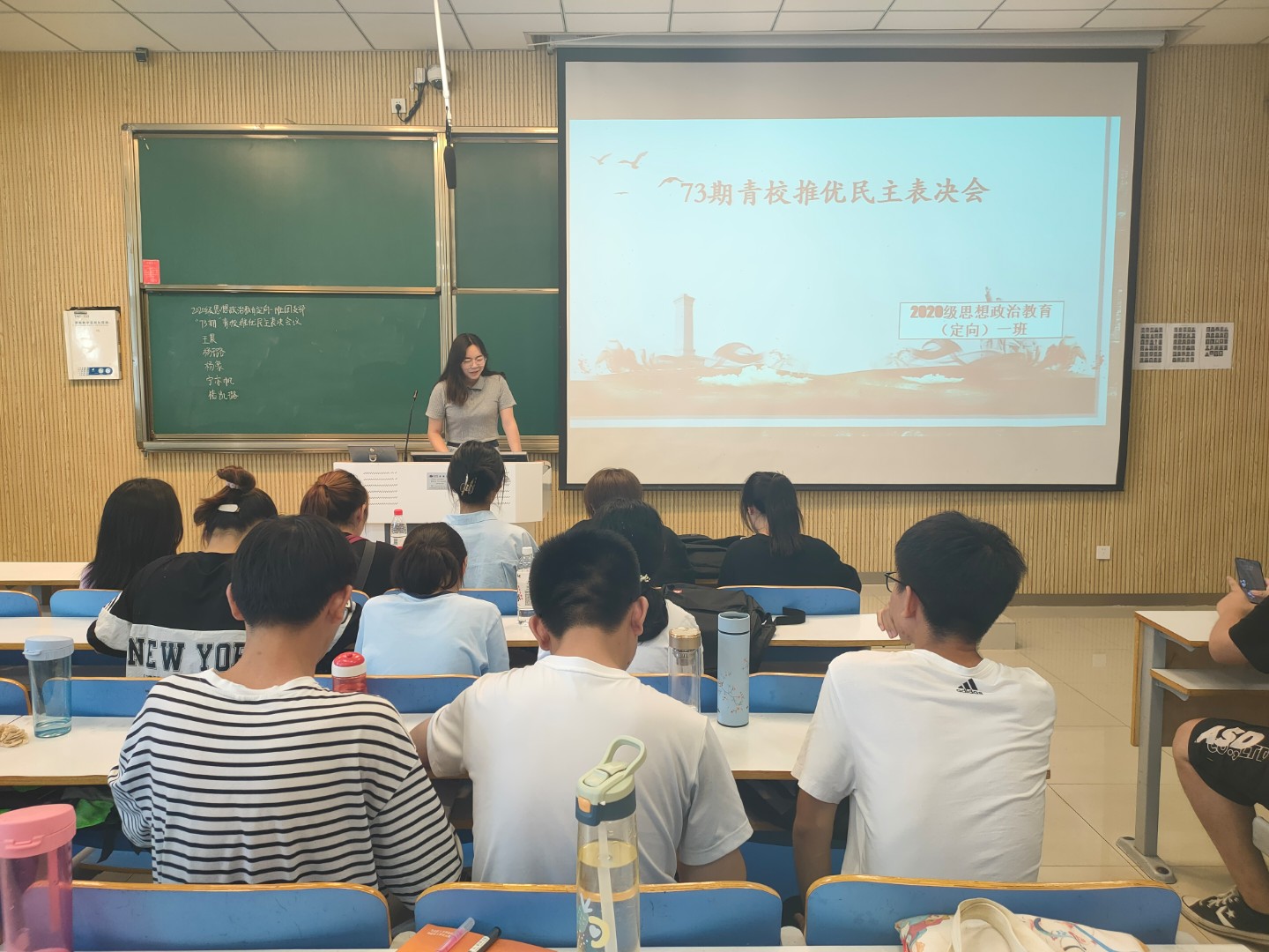 10月4日上午,beat365亚洲版官网2020级思想政治教育(定向)一班在社科楼515教室顺利举办团支部“73期”青校推优民主表决会议。beat365亚洲版官网思想政治教育(定向)一班全体学生参加了此次会议。