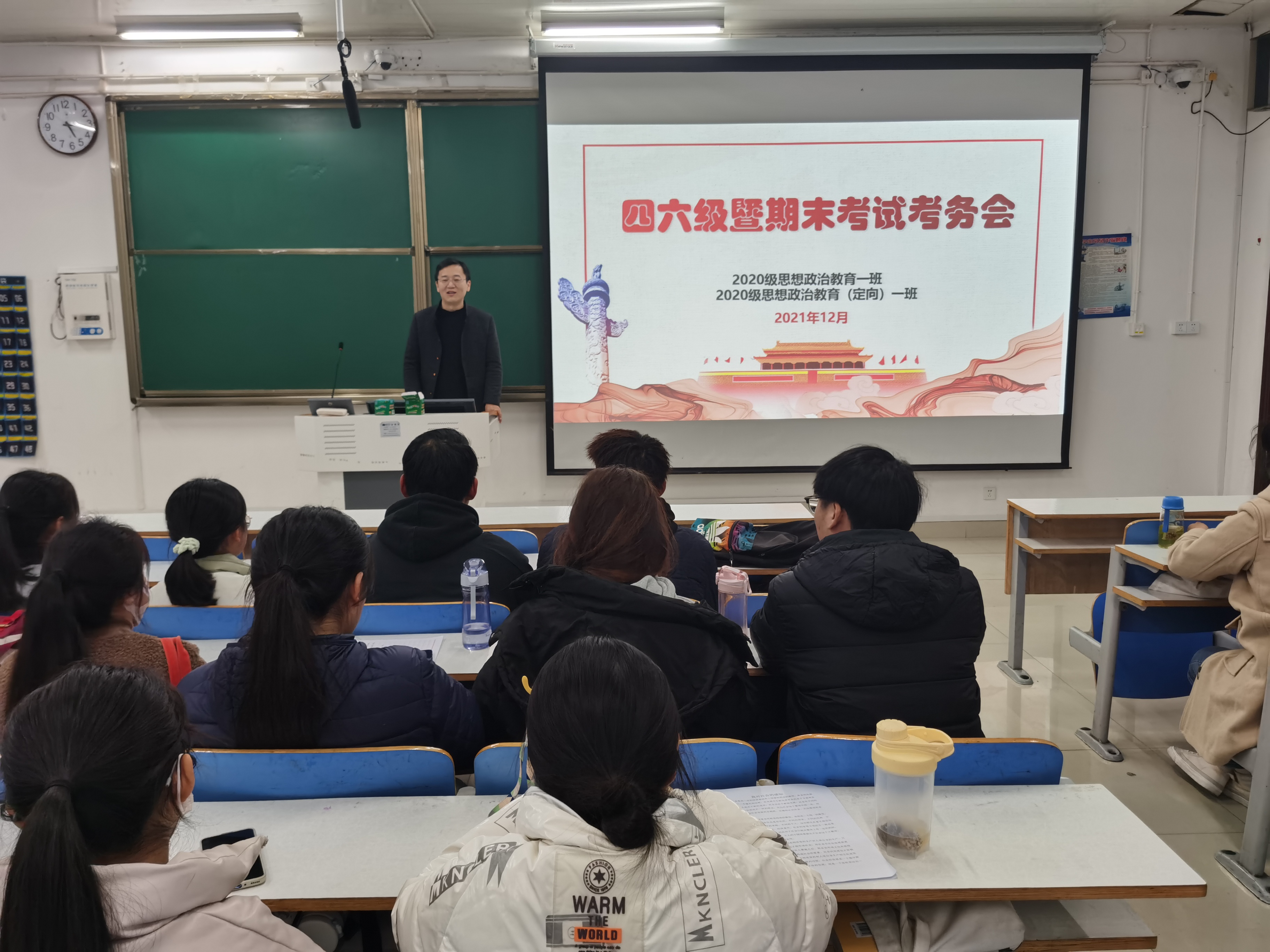 12月1日下午,beat365亚洲版官网2020级思想政治教育一班、定向一班在社科楼514教室召开四六级暨期末考试考务会。辅导员曹栋及2020级思想政治教育一班、定向一班全体同学参加了本次考务会,考务会由曹栋主持。