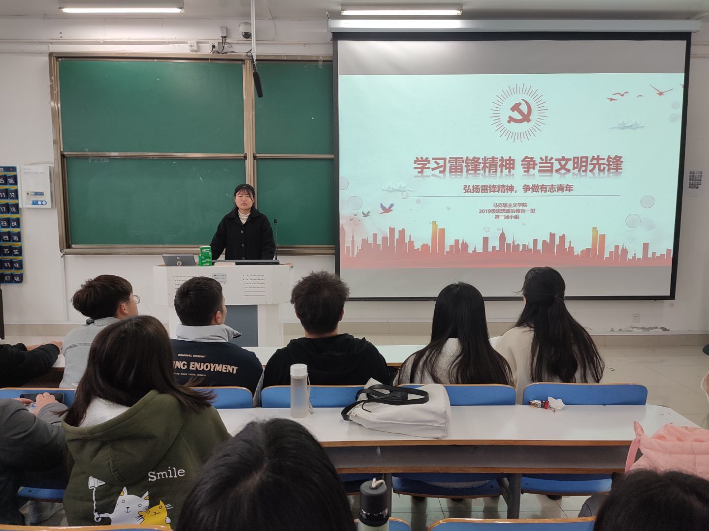 会议开始前,翟新芝向团员们介绍了雷锋同志的生平,回顾了雷锋同志艰难而又光荣的一生。接着,她围绕雷锋精神,向团员们详细讲解了什么是雷锋精神、雷锋精神的时代内涵以及雷锋精神的具体内容。最后,翟新芝带领团员们朗读毛泽东主席为雷锋同志所写题词。会议在团员们的掌声中落下帷幕。