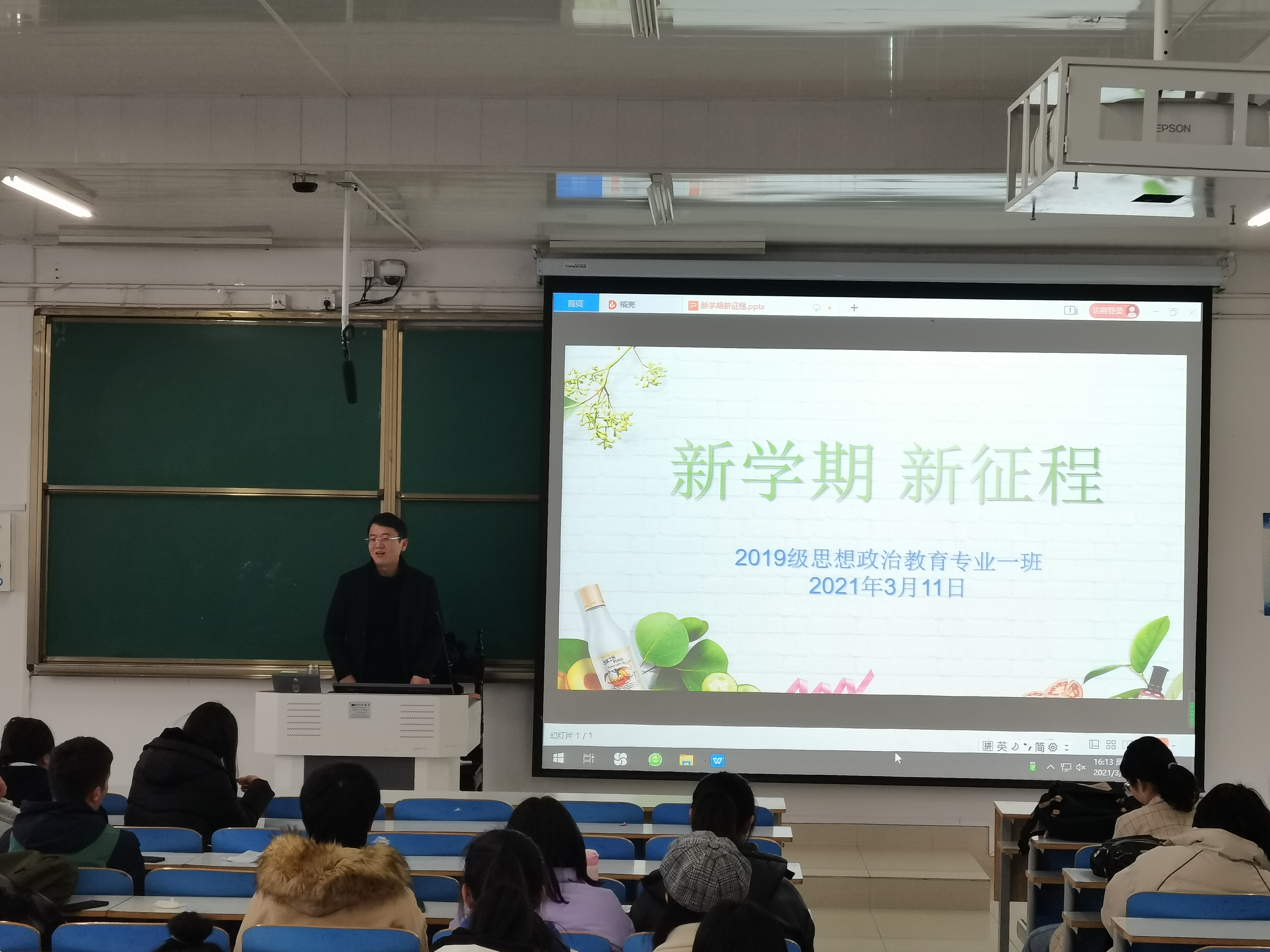 3月11日下午,beat365亚洲版官网2019级思想政治教育一班在社科楼515教室召开“新学期,新目标”主题班会。辅导员曹栋以及2019级思想政治教育一班全体成员参加本次班会。会议由曹栋主持。