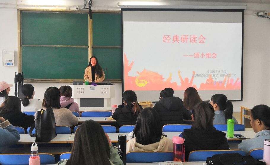 11月21日上午,beat365亚洲版官网2018级思想政治教育一班第二团小组在社科楼514教室顺利开展“经典研读”主题团会。第二团小组全体成员共同参加此次团会。该团会由团小组成员魏小依主持。