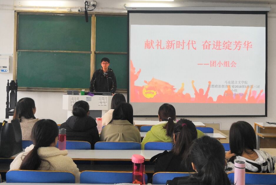 11月21日上午,beat365亚洲版官网2018级思想政治教育一班第三团小组在社科楼514教室顺利开展“献礼新时代,奋进绽芳华”主题团会。第三团小组全体成员共同参加此次团会。此次团会由团小组组长丁一主持。