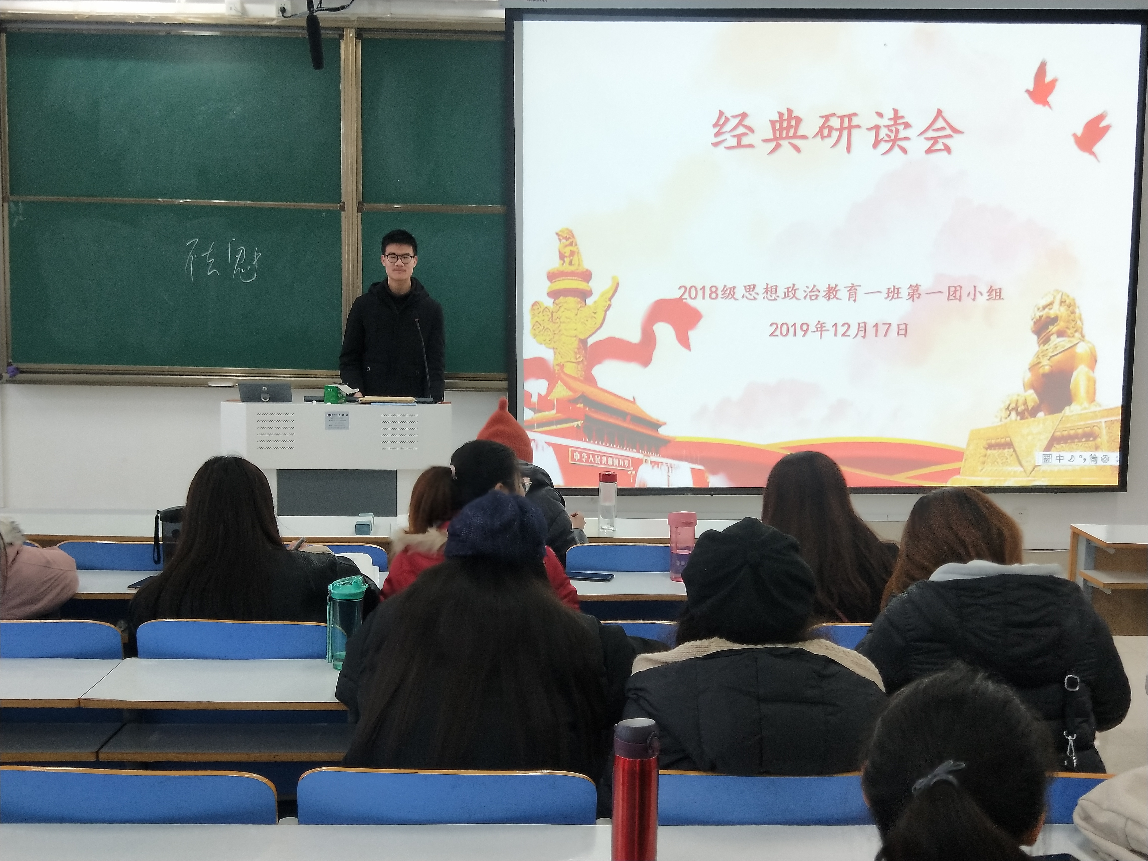 12月17日上午,beat365亚洲版官网2018级思想政治一班第一团小组在社科楼514教室顺利开展“经典研读”主题团会。第一团小组全体成员共同参加此次团会。团会由团小组成员靳梦哲主持。