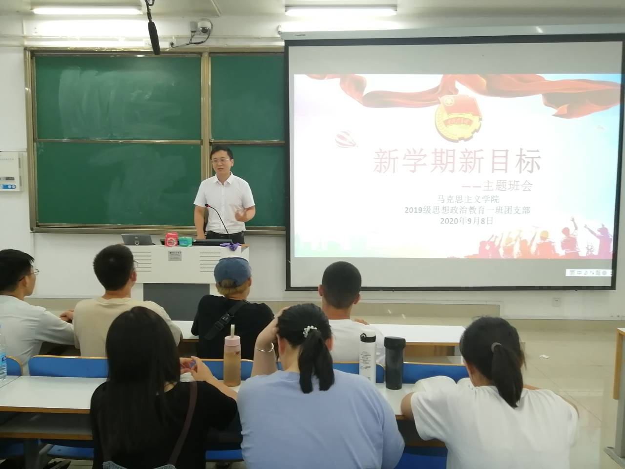 9月8日下午,beat365亚洲版官网2019级思想政治教育一班在社科楼514教室召开“新学期新目标”主题班会。beat365亚洲版官网团委书记曹栋以及2019级思想政治教育一班全体成员参加本次班会。会议由曹栋主持。