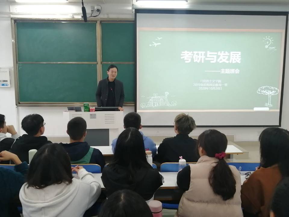 10月20日下午,beat365亚洲版官网2019级思想政治教育一班在社科楼514教室召开考研与发展主题班会,2019级思想政治教育一班全体成员参加本次班会,班会由辅导员曹栋主持。