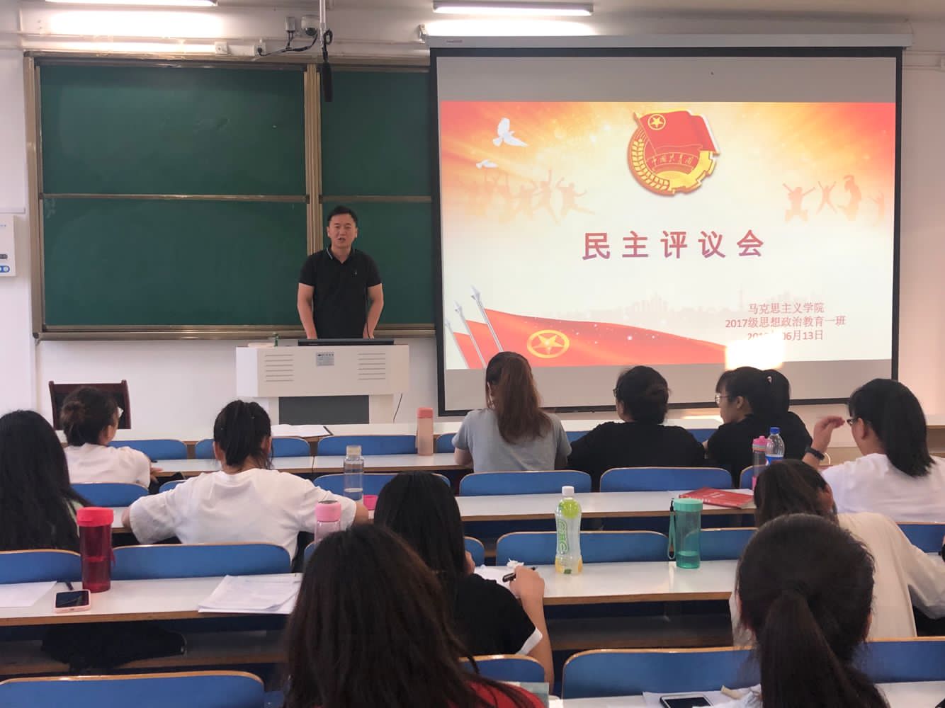 6月13日下午,beat365亚洲版官网2017级思想政治教育一班在社科楼514教室开展民主生活评议会。2017级思想政治教育一班全体同学参加此次班会。班会由班长邹创主持。