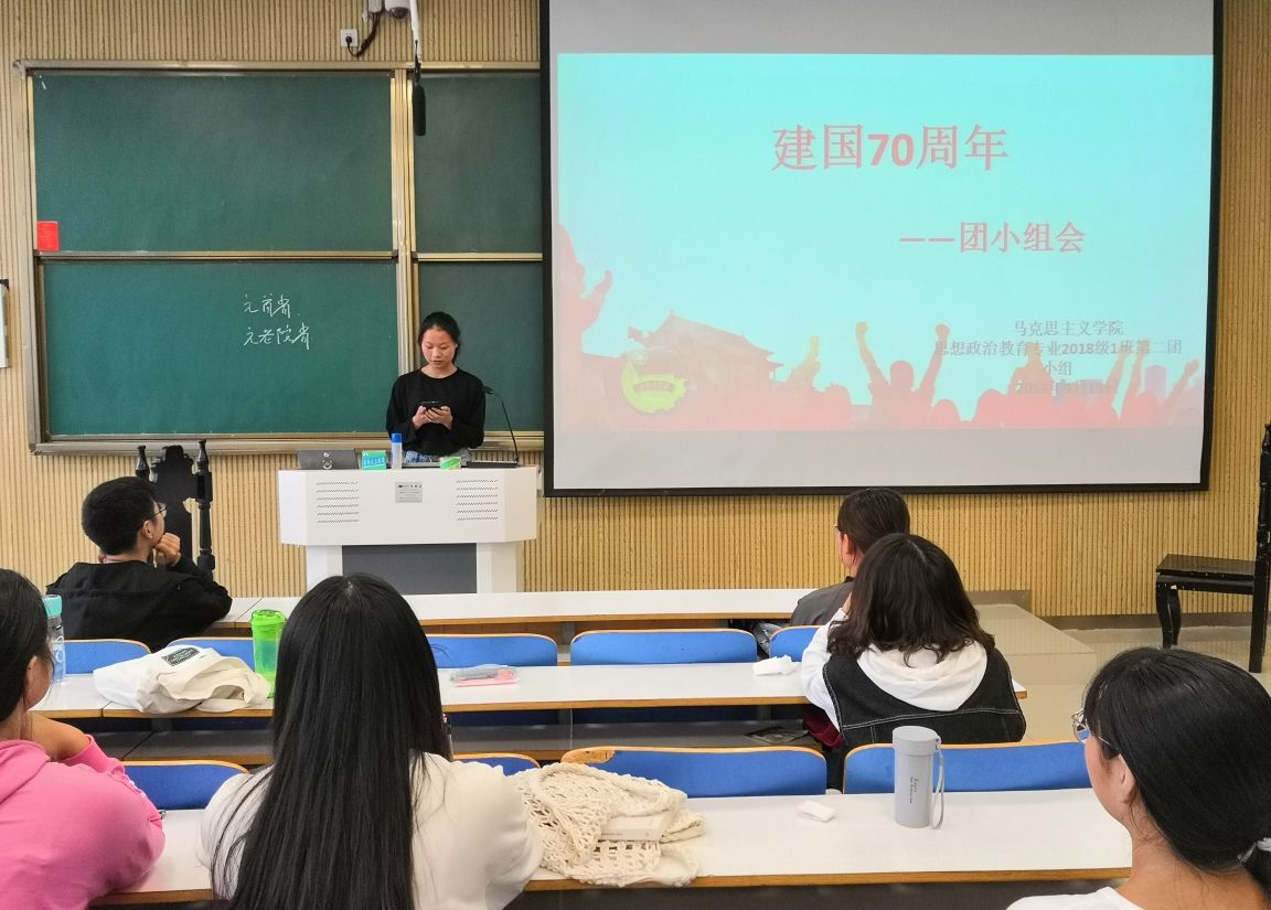 9月16日下午,beat365亚洲版官网2018级思想政治教育一班第二团小组在社科楼515教室顺利开展“建国70周年”主题团会。第二团小组全体成员共同参加此次团会。团会由团小组成员陈璐龙主持。
