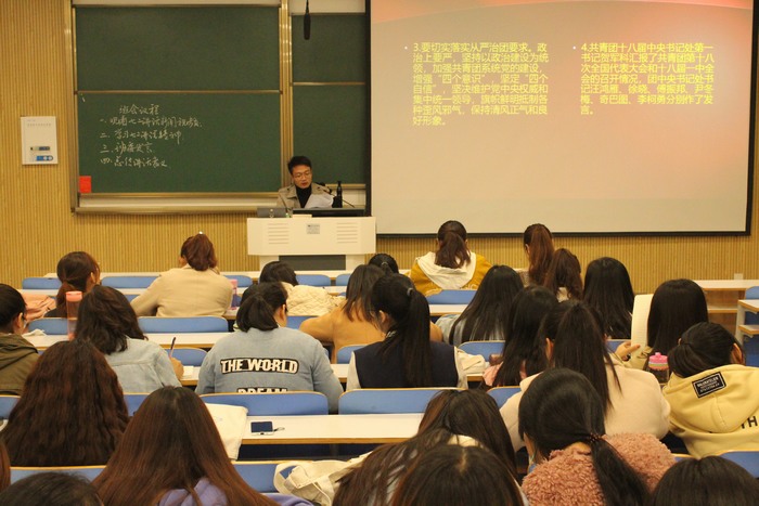 首先,谢文静对此次活动的内容及现实意义做出详细介绍,她指出习总书记对青年未来发展极其重视,强调代表广大青年、赢得广大青年、依靠广大青年是党不断从胜利走向胜利的重要保证。随后向广大青年发出了“敢于有梦、勇于追梦、勤于圆梦”的奋斗号令。其次,谢文静组织观看相关视频并邀请一些同学做学习经验分享。同学们纷纷表示既要坚定理想信念,也要加踏实地,自觉地担当起强国时代青年的历史使命。接着,邹创发言对本次活动的参与情况做出评价与总结,并号召同学们学以致用,坚定理想信念,在以后的工作生活中牢记习总书记殷切期望,坚守教书育人的本心。