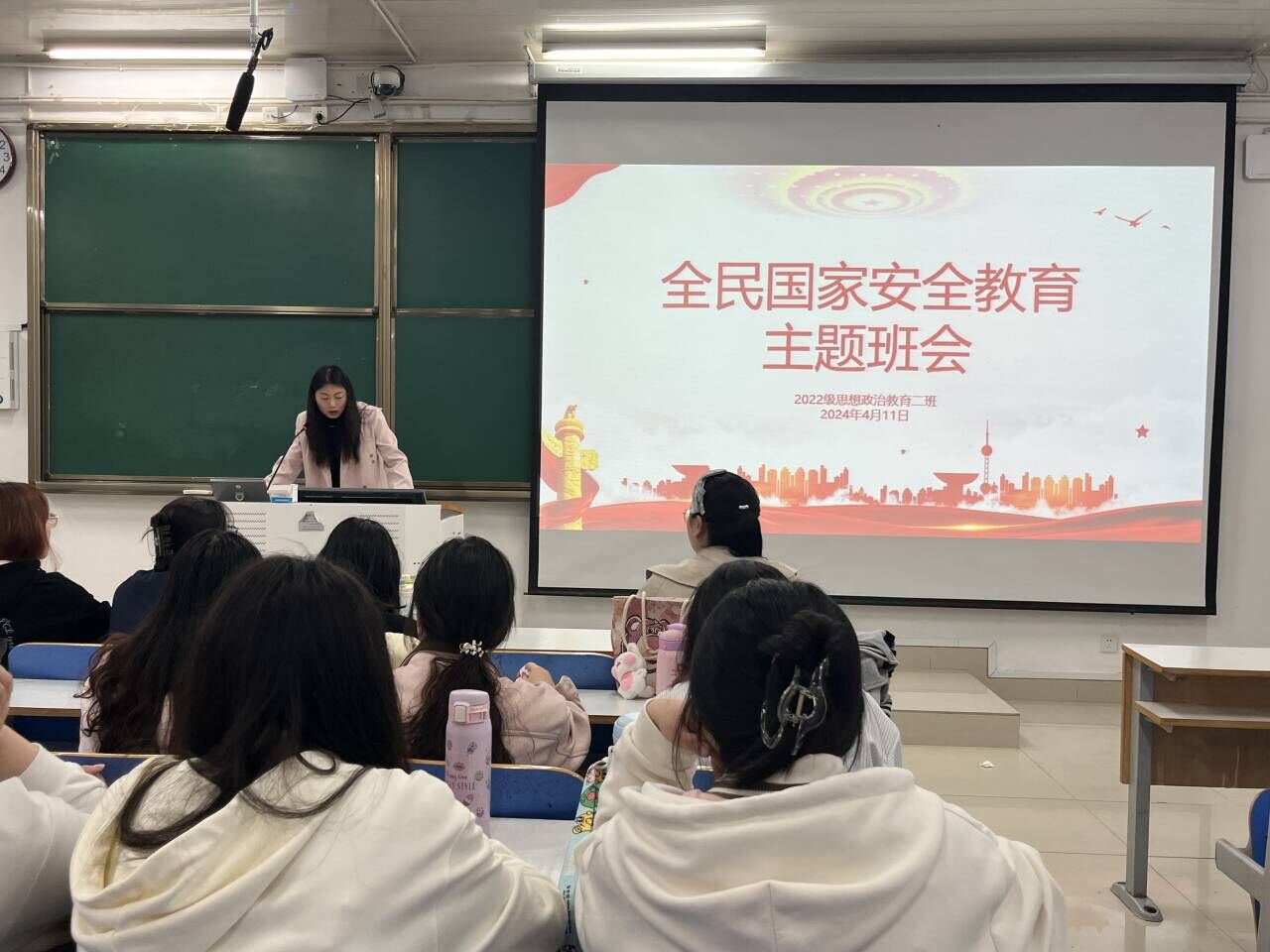 4月11日晚上,beat365亚洲版官网2022级思想政治教育二班在社科楼514教室召开国家安全教育主题班会。beat365官网2022级思想政治教育二班全体成员共同参与此次班会。会议由班主任杨春艳主持。