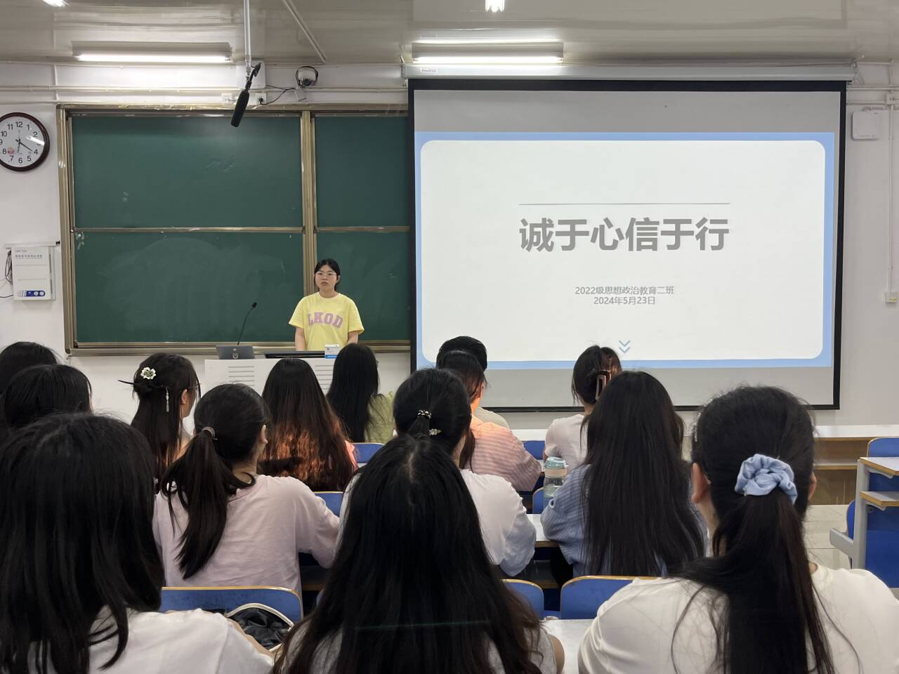为增强学生的诚信意识和责任意识,落实立德树人根本任务,5月23日下午,beat365亚洲版官网2022级思想政治教育二班在社科楼514教室召开“诚于心,信于行”主题班会。beat365官网2022级思想政治教育二班全体成员共同参与此次班会。会议由副班长冯玮珈主持。
