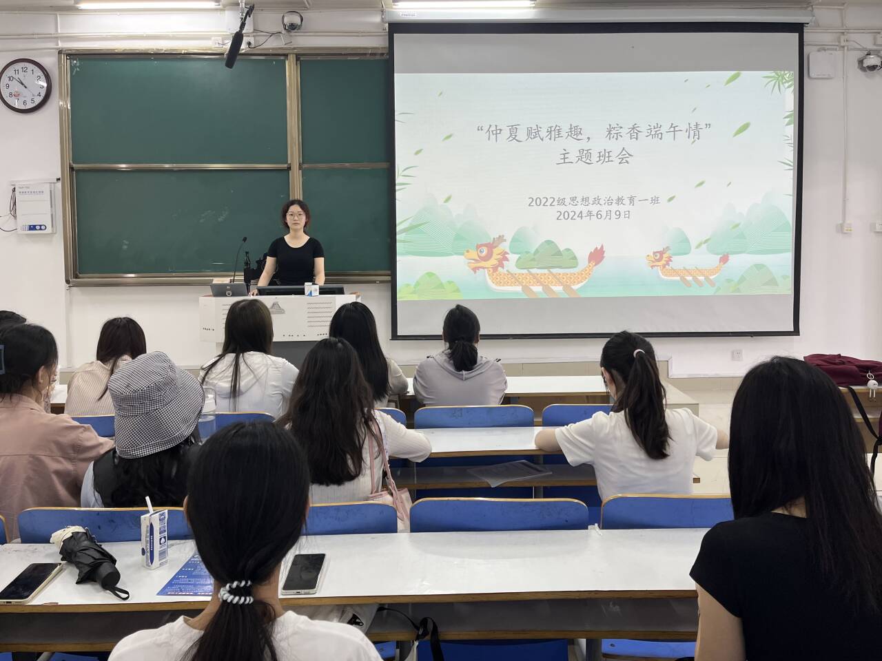 为进一步弘扬中华优秀传统文化,6月9日上午,beat365亚洲版官网2022级思想政治教育一班在社科楼514教室召开“仲夏赋雅趣,粽香端午情”主题班会,beat365官网2022级思想政治教育一班全体同学共同参与本次班会,班会由班长李佳茹主持。