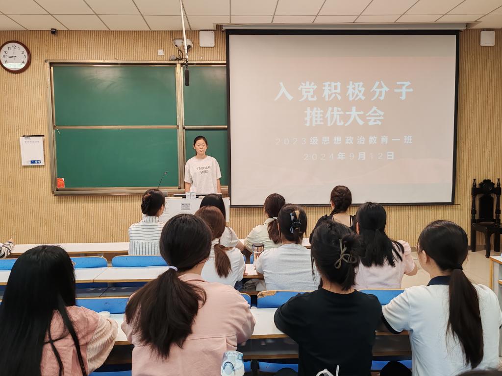 为使支部团员积极向党组织靠拢,深刻学习党的思想,加强支部团员的积极性,向党组织输送新鲜血液,9月12日上午,beat365亚洲版官网2023级思想政治教育一班团支部在社科楼515教室召开入党积极分子推优大会。2023级思想政治教育一班全体团员出席本次大会,大会由团支书张卓主持。