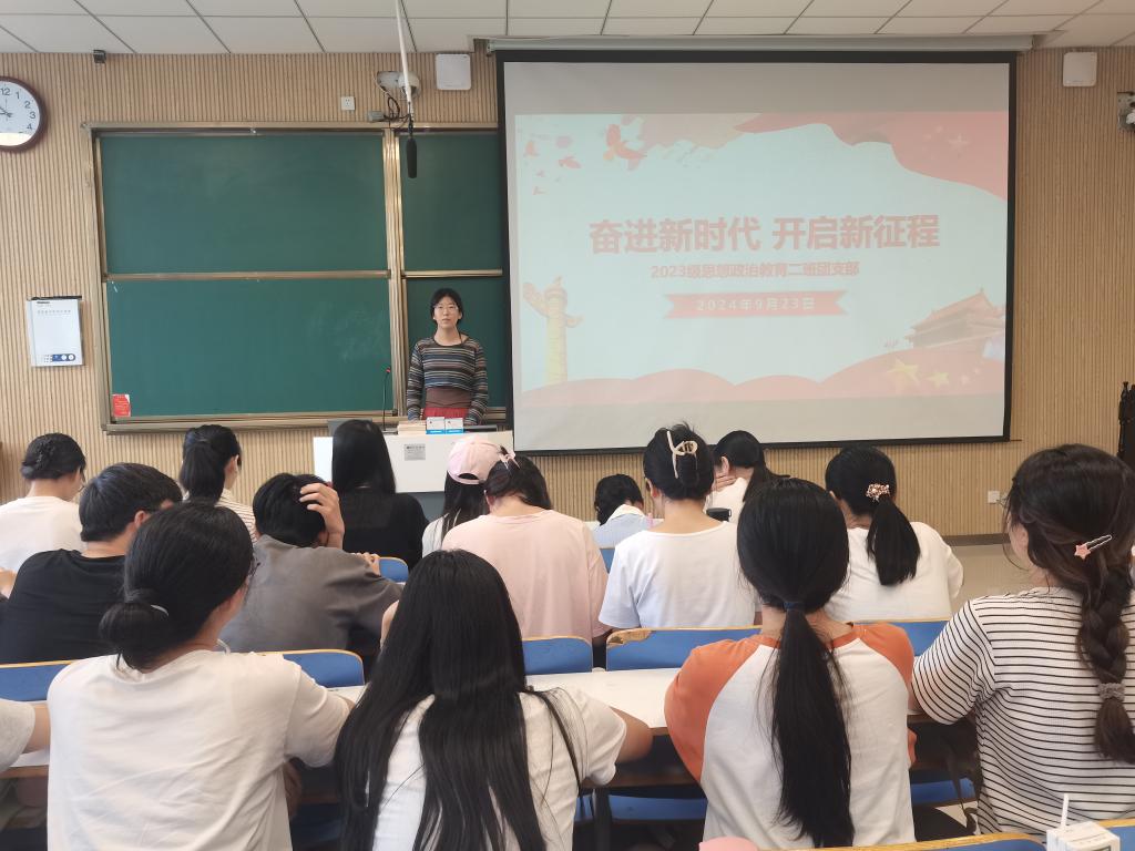为进一步做好党的青年群众工作,坚持党对共青团的领导,9月23日上午,beat365亚洲版官网2023级思想政治教育二班在社科楼515教室召开“奋进新时代,开启新征程”主题团课,本次团课由团支书王慜初主持,全体二班同学参加。