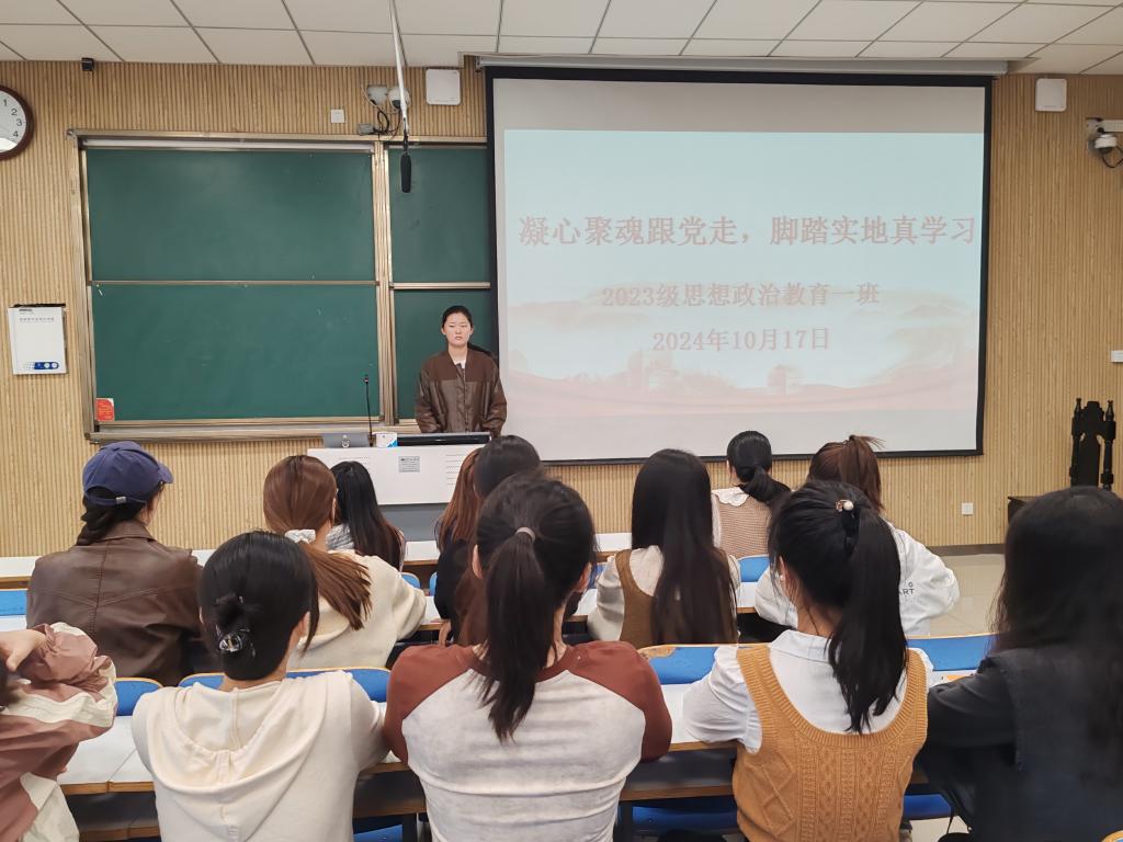为不断增强我班学子对于党的创新理论的政治认同、思想认同、理论认同、情感认同,提高其理论素养和能力本领,10月17日上午,beat365亚洲版官网2023级思想政治教育一班在社科楼515教室召开“凝心聚魄跟党走,脚踏实地真学习”主题团课。2023级思想政治教育一班全体同学参与本次团课,团课由团支书张卓主持。