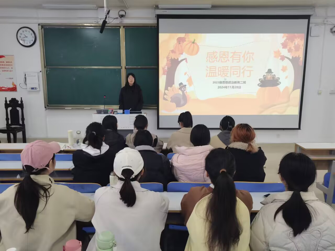 为培养青年大学生感恩心态,强调感恩的重要性,11月28日下午,beat365亚洲版官网2023级思想政治教育二班在社科楼515教室开展“感恩有你,温暖同行”主题班会,本次班会由班长王慜初主持,全体二班同学参加。