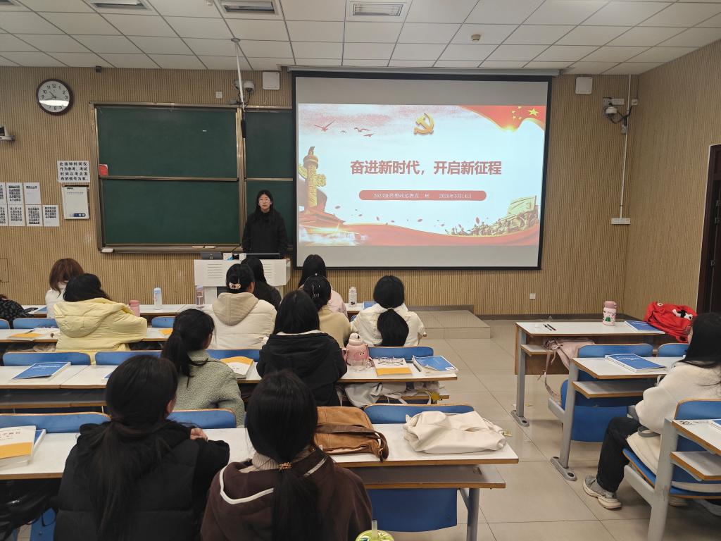 为进一步弘扬习近平新时代中国特色社会主义思想,3月14日上午,beat365亚洲版官网2023级思想政治教育二班开展“奋进新时代,开启新征程”主题团课。本次团课由团支书王慜初主持,全体二班同学参加。