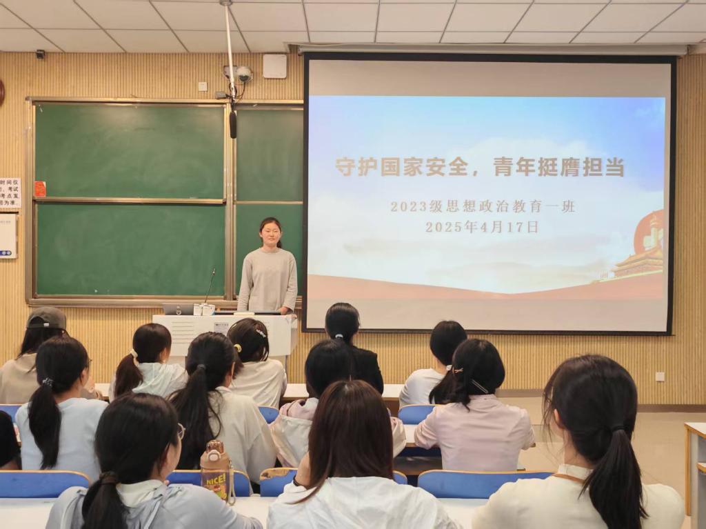 为增强班级同学的国家安全意识,激发青年担当精神,4月17日上午,beat365亚洲版官网2023级思想政治教育一班在社科楼515教室召开“牢记使命担当,青春筑梦强国行”主题团课。2023级思想政治教育一班全体同学参与本次团课,团课由团支书张卓主持。