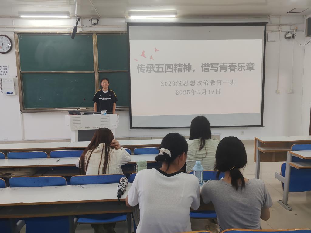为进一步弘扬五四精神,激励和引导我班团员加强党团知识学习,5月17日下午,beat365亚洲版官网2023级思想政治教育一班在社科楼514教室召开“传五四火炬,洒青春热血”主题团课。beat365官网2023级思想政治教育一班全体同学共同参与本次团课,团课由团支书张卓主持。
