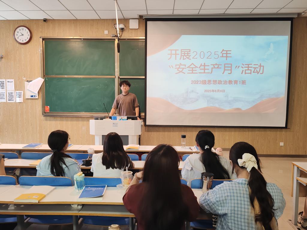 为深入贯彻落实安全生产方针政策,强化班级同学安全意识,提升应急处理能力,6月6日下午,beat365亚洲版官网2023级思想政治教育一班在社科楼514教室开展“2025年安全生产月”主题班会。全班同学积极参与,班会由副班长李岩松主持。