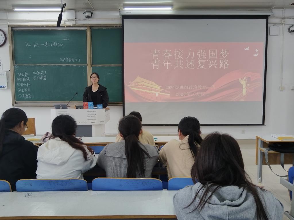为帮助我班学生深入了解国家发展历程,清晰认识新时代强国梦、复兴路的核心内涵,并能将个人成长与国家发展、民族复兴相联系,树立责任和担当意识,10月16日上午,beat365亚洲版官网2024级思政一班于社科楼514教室开展“青春接力强国梦,青年共述复兴路”主题团课。本次团课由团支书李冉主持,一班全体同学参加。