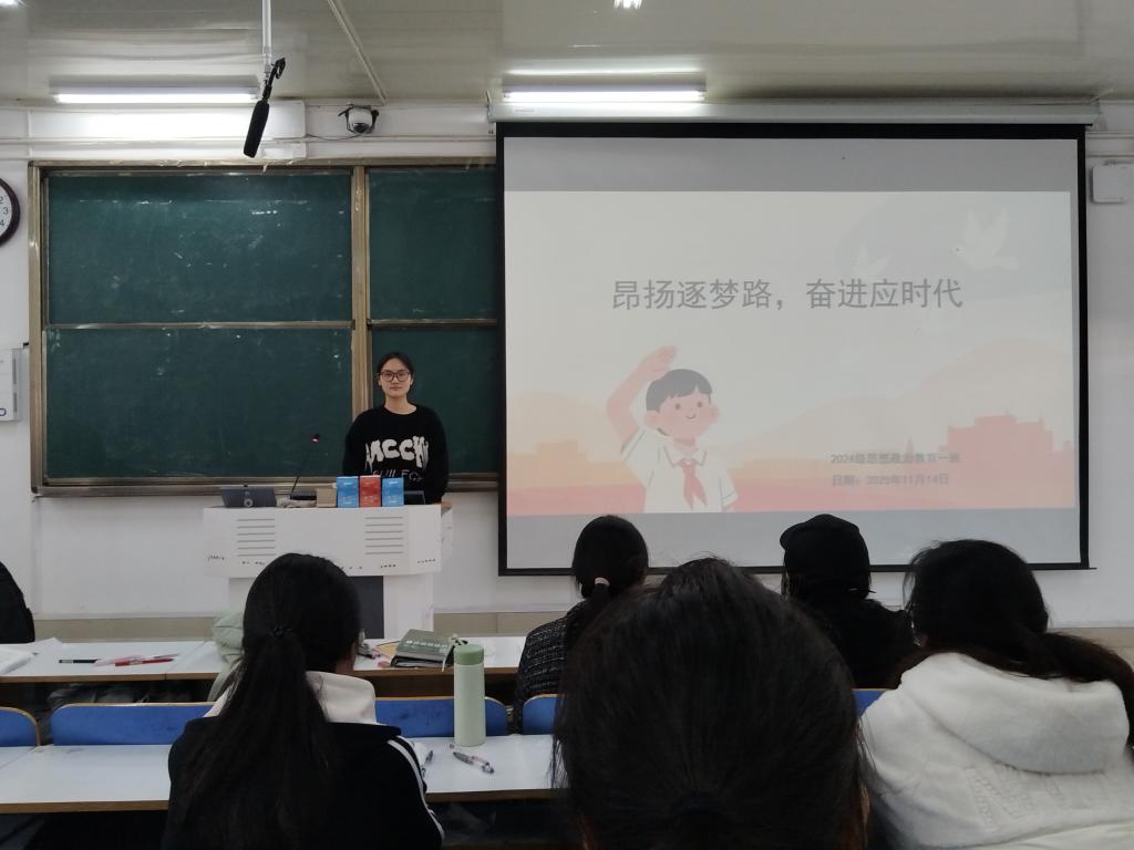 为深化青年学子的使命认知,凝聚奋进青春力量,11月14日上午,beat365亚洲版官网2024级思想政治教育一班于社科楼514教室开展“昂扬逐梦路,奋进应时代”主题团课。本次团课由团支书李冉主持,一班全体同学参加。