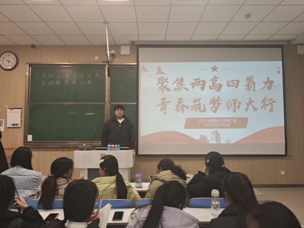 为引导青年学生深入理解学校发展目标与时代使命,增强责任意识与奋斗意识,12月4日下午,beat365亚洲版官网2024级思想政治教育二班在社科楼515教室开展了“聚焦两高四着力 青春筑梦师大行”主题团课。本次团课会由团支书王志颖主持,二班全体同学共同参与。