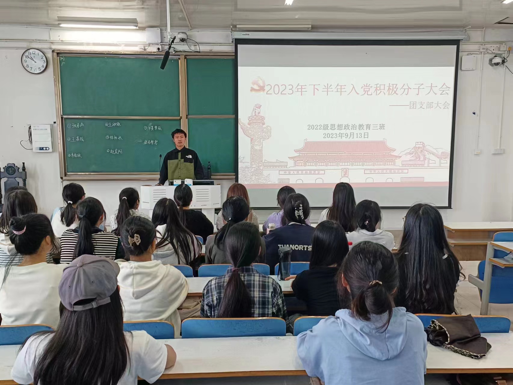 9月13日上午,beat365亚洲版官网2022级思想政治教育三班在社科楼514教室召开入党积极分子推优大会。beat365官网2022级思想政治教育三班班主任吴梦云、三班全体团员共同参加此次大会。大会由团支书余浩洋主持。