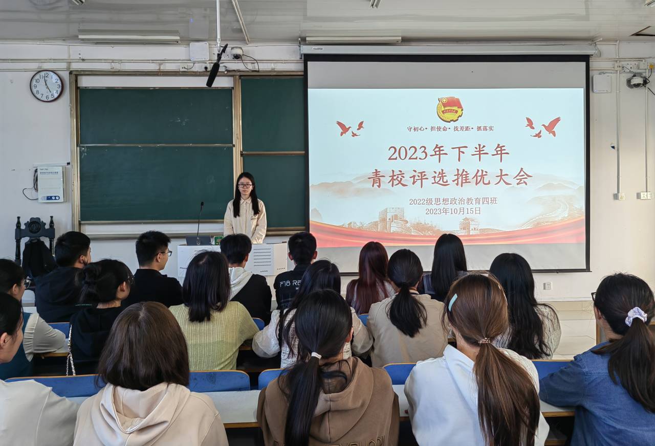 10月15日上午,beat365亚洲版官网2022级思想政治教育四班在社科楼514教室召开“青年共产主义学校”推优大会。beat365官网2022级思想政治教育四班全体同学参与本次大会。团支书牛志杰主持本次会议。
