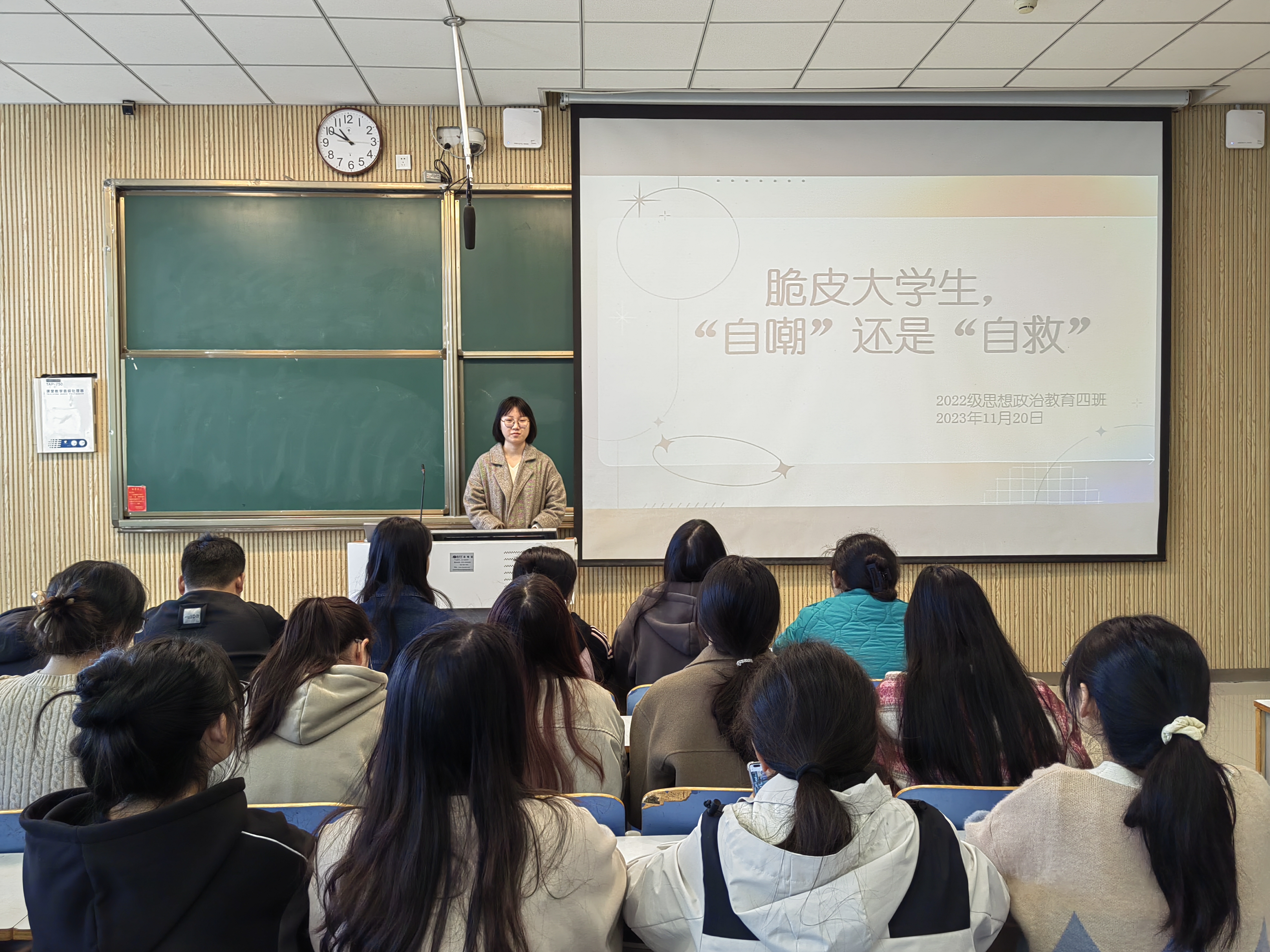 为了进一步提高本班同学的心理素质,深入开展心理健康教育,11月20日上午,beat365亚洲版官网2022级思想政治教育四班在社科楼515教室召开“脆皮大学生,‘自嘲’还是‘自救’”心理班会。beat365官网2022级思想政治教育四班全体同学参与本次班会。本次班会由心理委员徐成若主持。