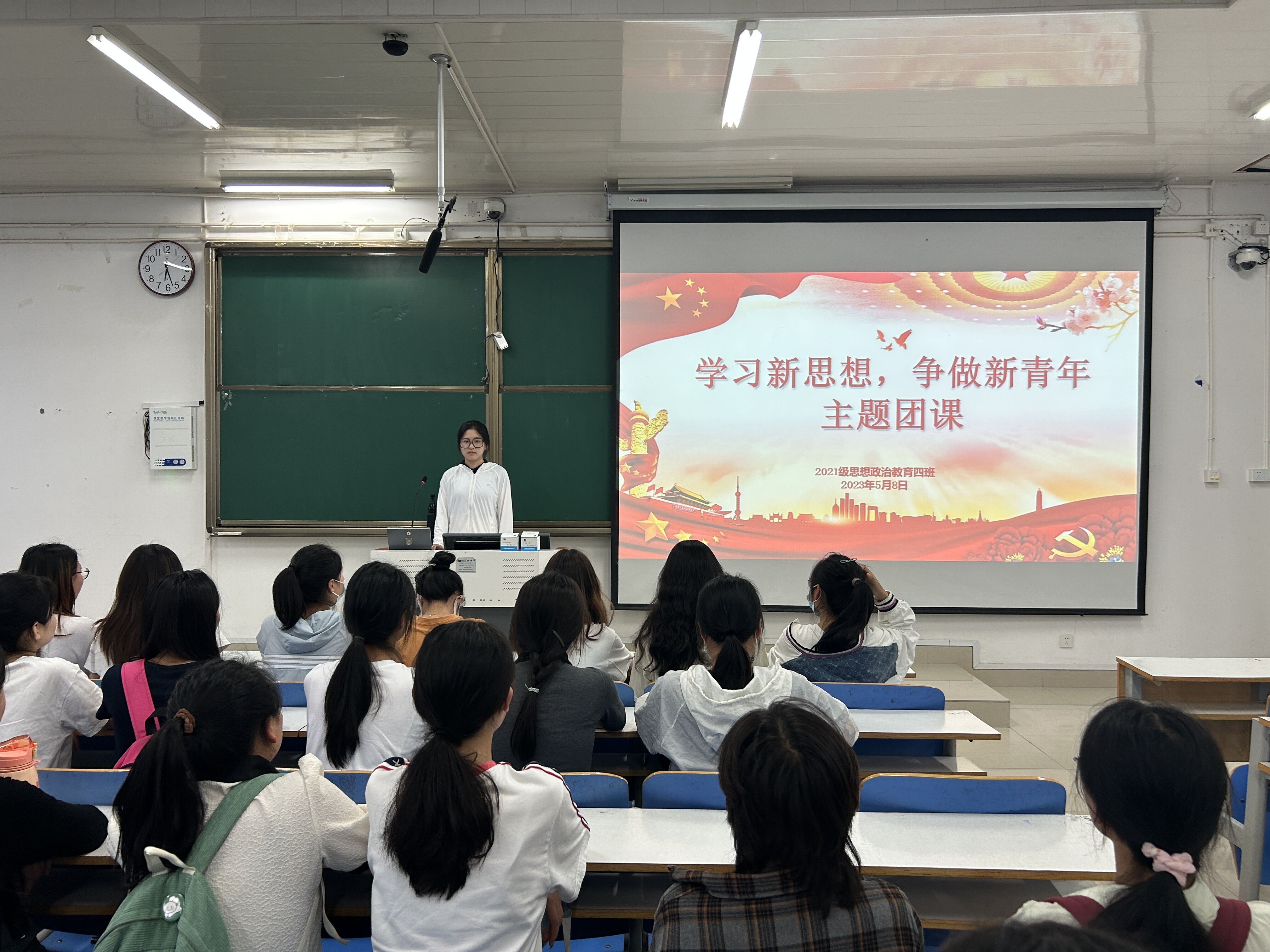 5月8日下午,beat365亚洲版官网2021级思想政治教育四班在社科楼514教室开展“学习新思想,争做新青年”主题团课。2021级思想政治教育四班全体团员参加本次团课。团课由团支书刘珂含主持。