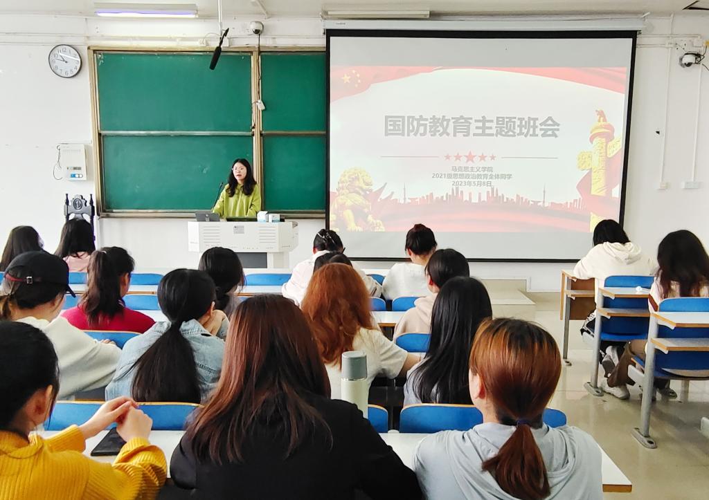 5月8日下午,beat365亚洲版官网2021级思想政治教育三班、四班在社科楼514教室召开国防教育主题班会。辅导员高小佳以及2021级思想政治教育全体成员共同参加此次主题班会。班会由辅导员高小佳主持。
