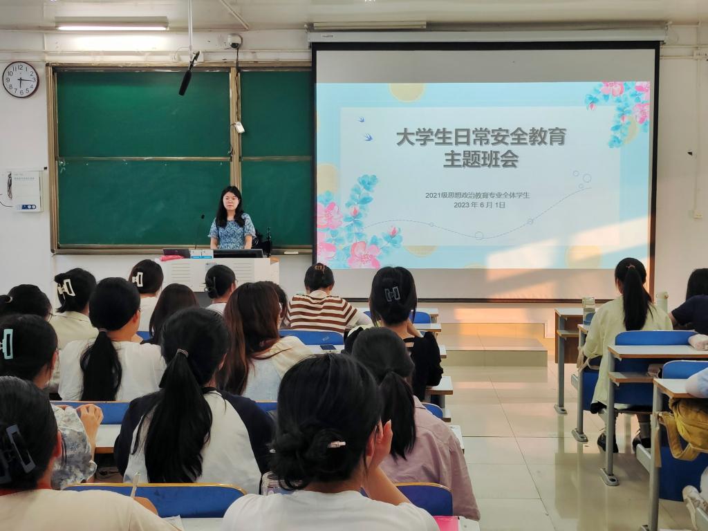 6月1日下午,beat365亚洲版官网2021级思想政治教育三班、四班在社科楼514教室召开“大学生日常安全教育”主题班会。辅导员高小佳、beat365亚洲版官网2021级思想政治教育三班、四班全体成员参与此次会议。会议由辅导员高小佳主持。