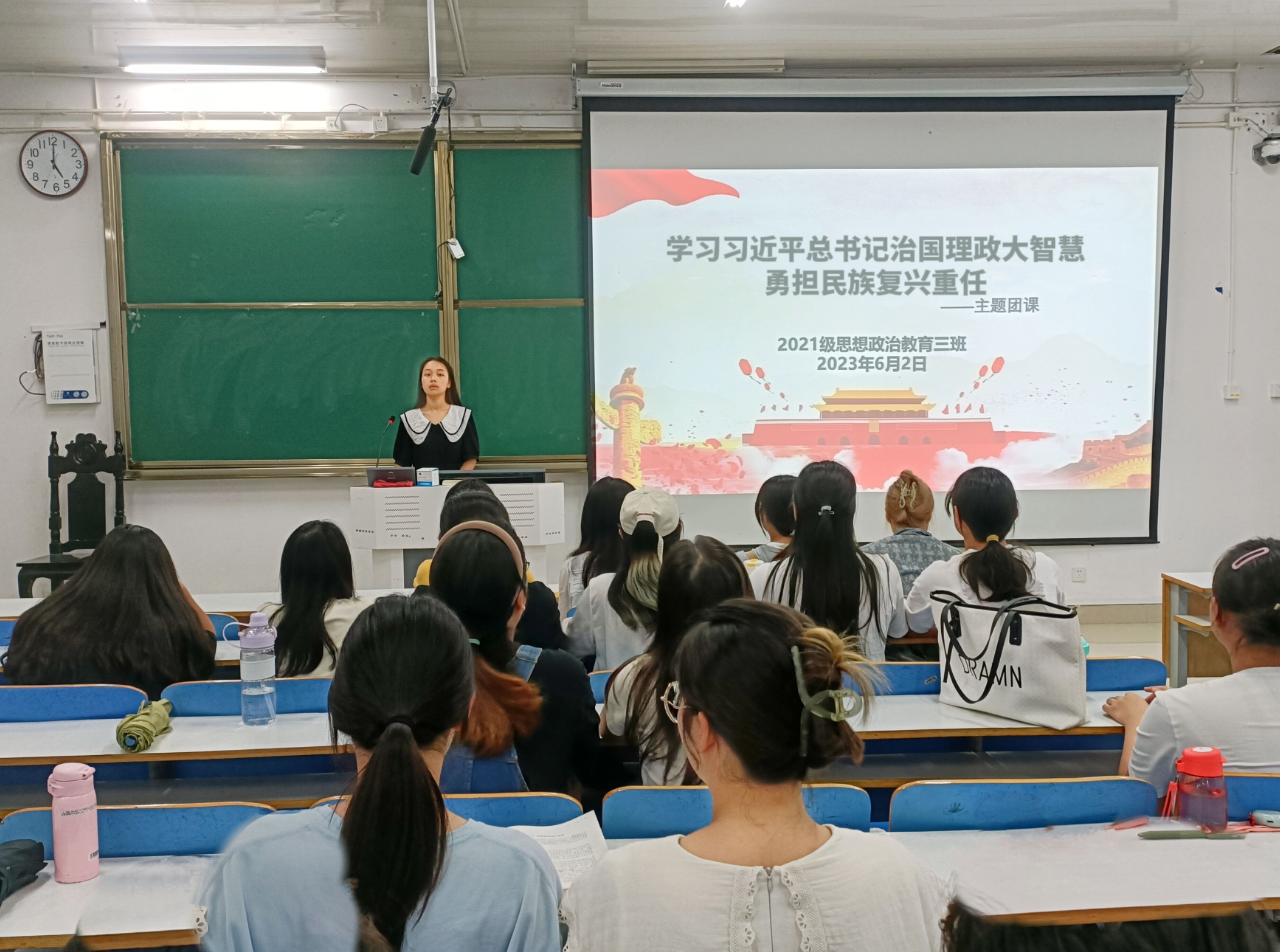 6月2日下午,beat365亚洲版官网2021级思想政治教育三班在社科楼514教室召开“学习习近平总书记治国理政大智慧,勇担民族复兴重任”主题团课。beat365亚洲版官网2021级思想政治教育三班全体团员参与此次会议。会议由团支书王岚霄主持。