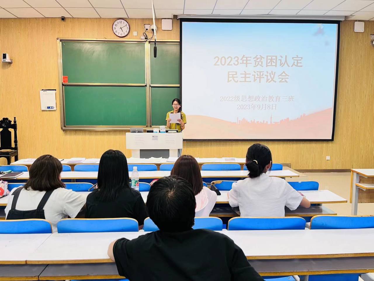 为确保家庭经济困难学生“应助尽助”,9月8日下午,beat365亚洲版官网2022级思想政治教育三班在社科楼515教室召开2023年贫困认定民主评议会。beat365官网2022级思想政治教育三班班主任吴梦云、8名学生评选代表和两名班委成员共同参与评议会。会议由班主任吴梦云主持。