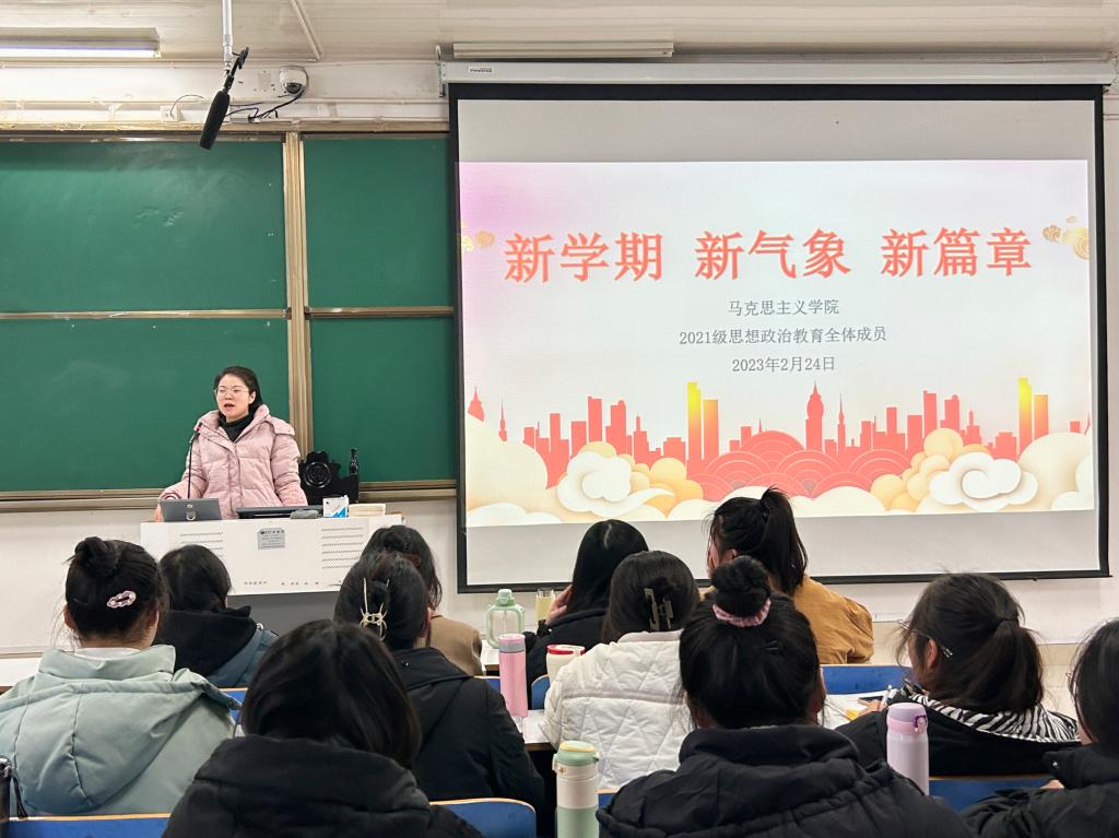 2月24日下午,beat365亚洲版官网2021级思想政治教育三班、四班在社科楼514教室召开“新学期、新气象、新篇章”主题班会。辅导员高小佳以及2021级思想政治教育全体成员共同参加本次班会。班会由辅导员高小佳主持。