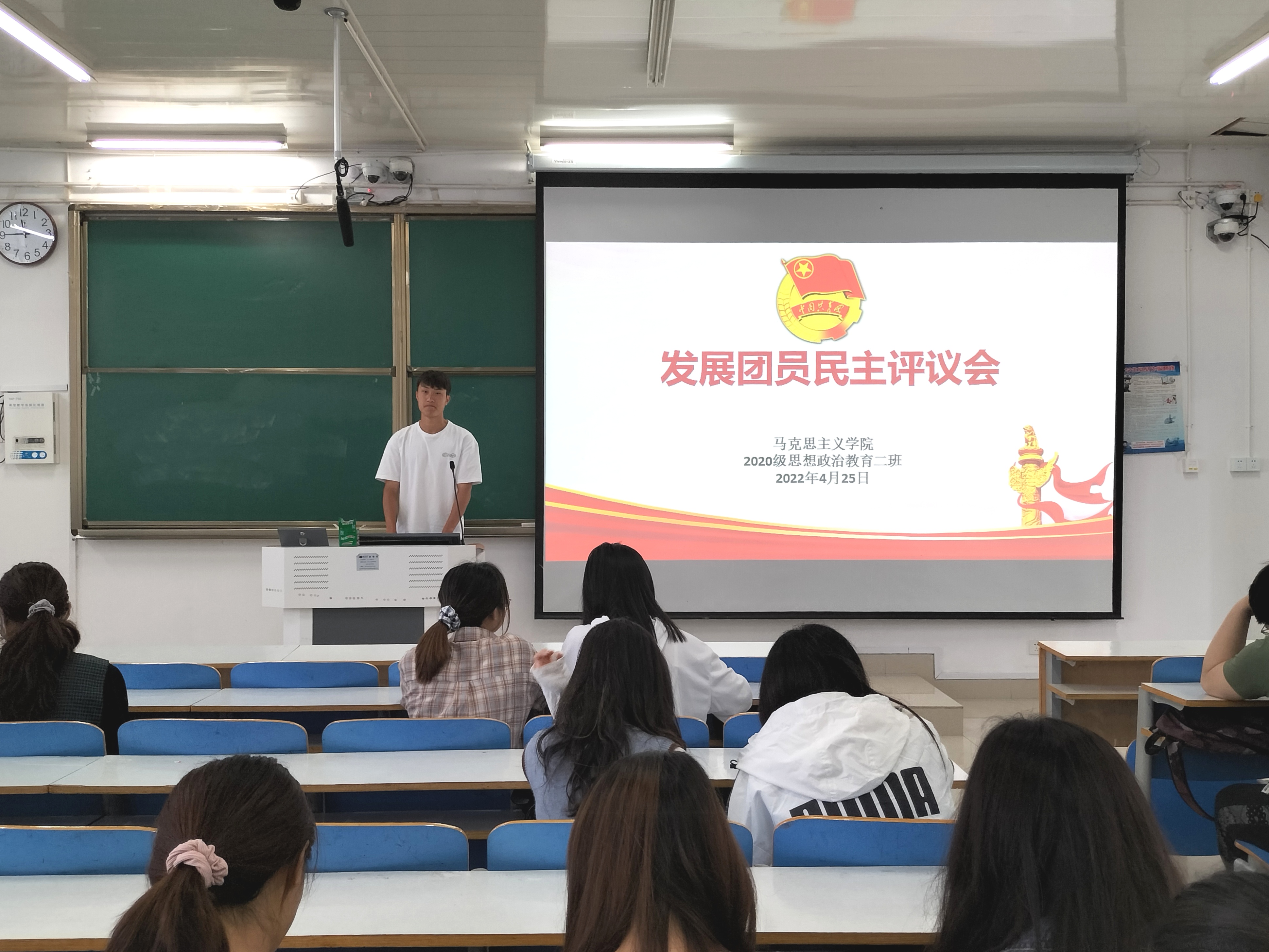 为进一步发展壮大团员队伍,为团支部注入新鲜血液,4月25日上午,beat365亚洲版官网2020级思想政治教育二班在社科楼514教室召开2022年上半年团员计划发展对象民主评议会。2020级思想政治教育二班全体团员共同参加本次会议。会议由团支书陈宇航主持。