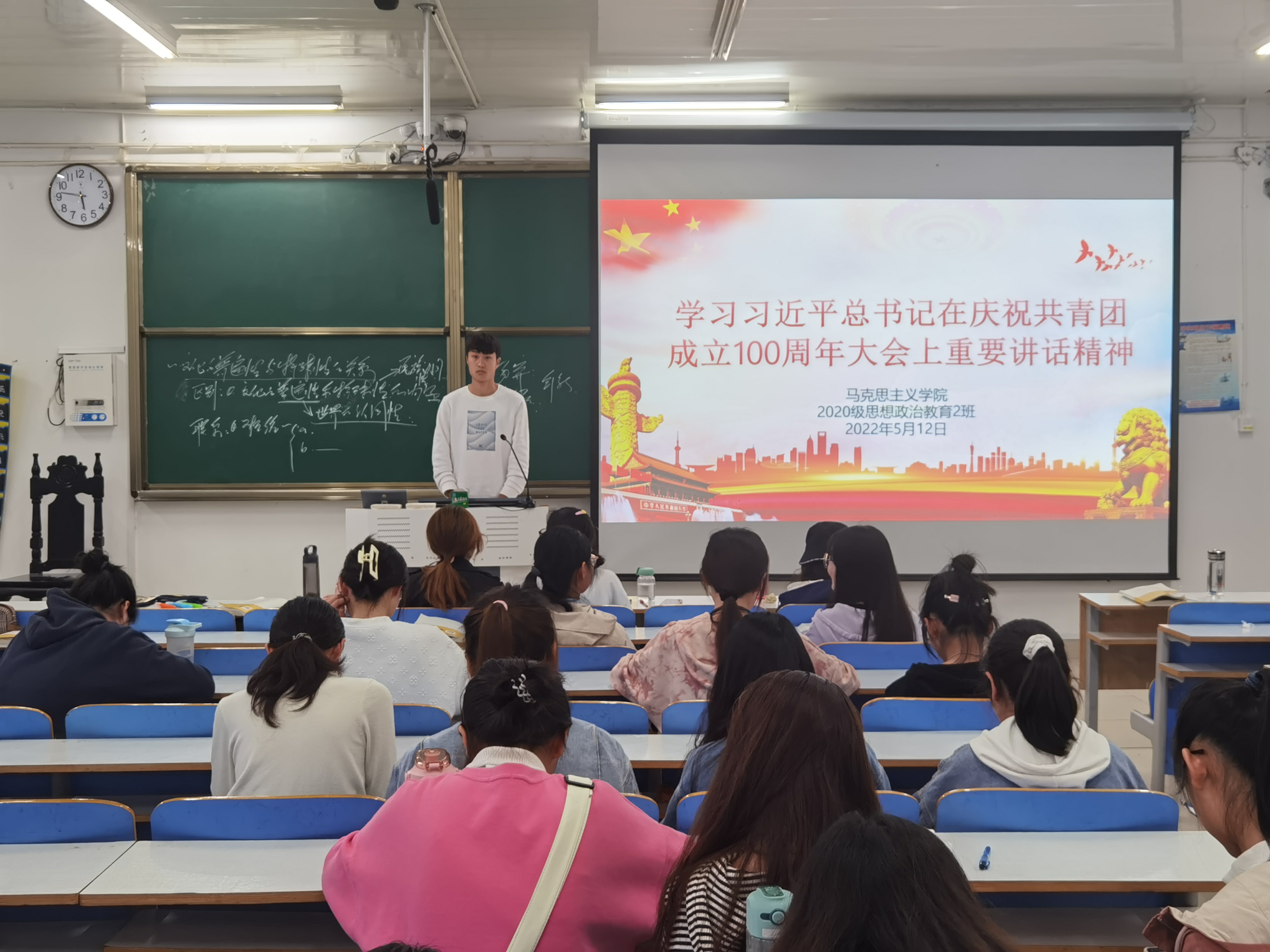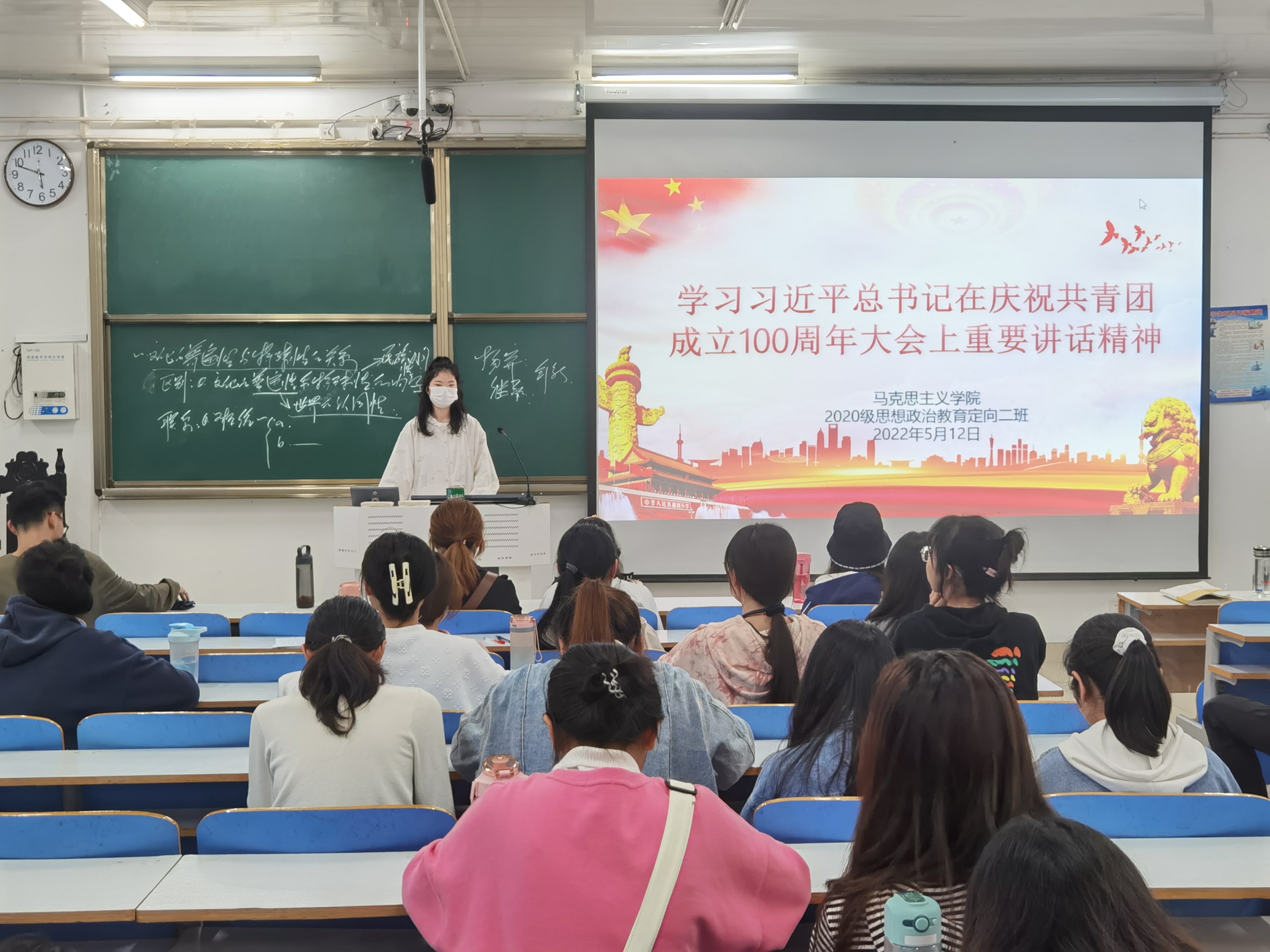奋进新时代,百年正青春。5月12日下午,beat365亚洲版官网2020级思想政治教育二班、定向二班在社科楼514教室开展“学习习近平总书记在庆祝中国共产主义青年团成立100周年大会上的重要讲话”主题团课。2020级思想政治教育二班、定向二班全体团员共同参与本次团课。
