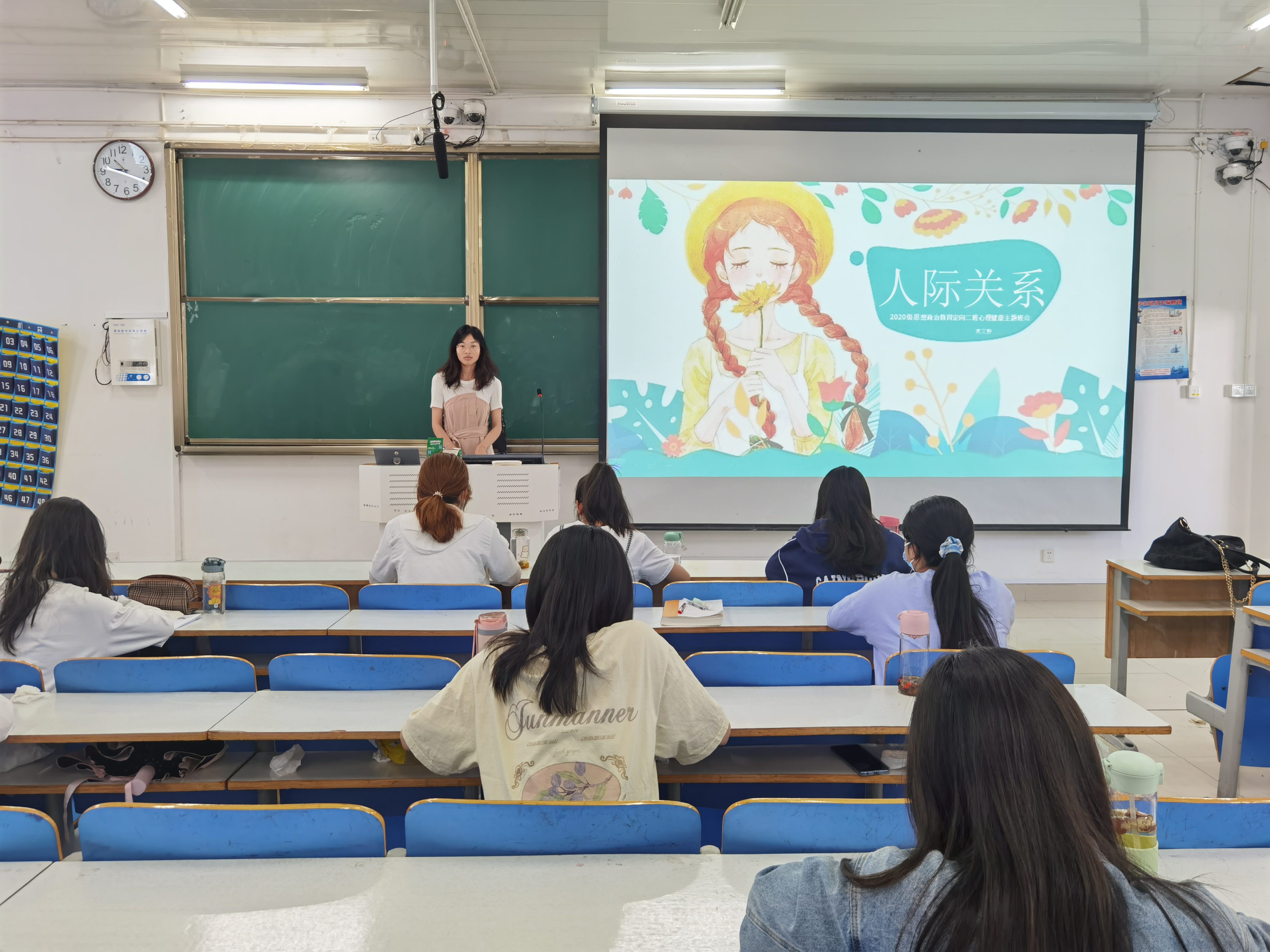 5月17日上午,beat365亚洲版官网2020级思想政治教育二班、定向二班在社科楼514教室开展心理健康教育主题班会。2020级思想政治教育二班、定向二班全体同学共同参会。会议由心理委员高文静、刘晶晶主持。