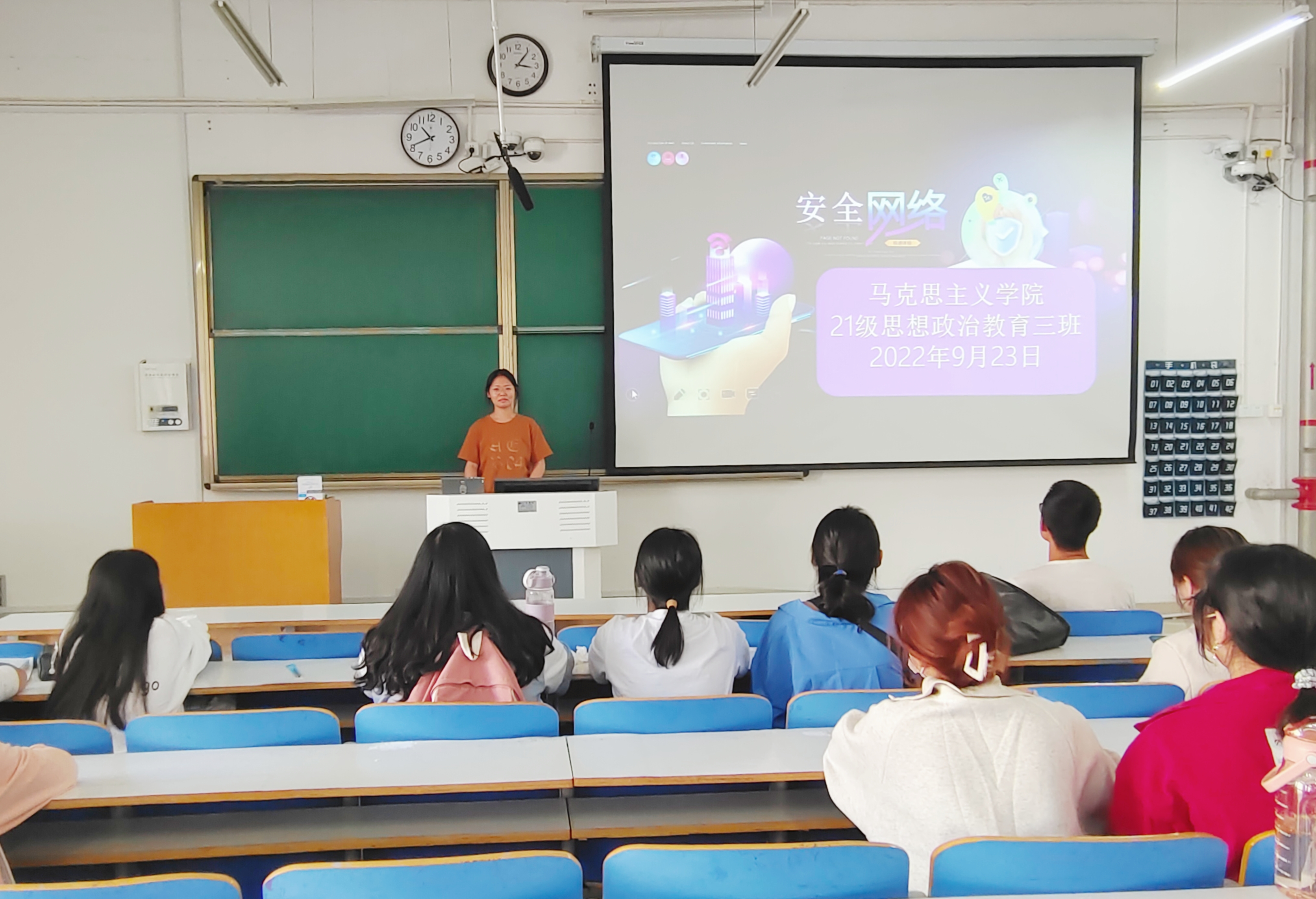 9月23日上午,beat365亚洲版官网2021级思想政治教育三班在社科楼514召开“提高安全意识 文明使用网络”主题班会。2021级思想政治教育三班全体成员参与此次会议。会议由心理委员许竞文主持。