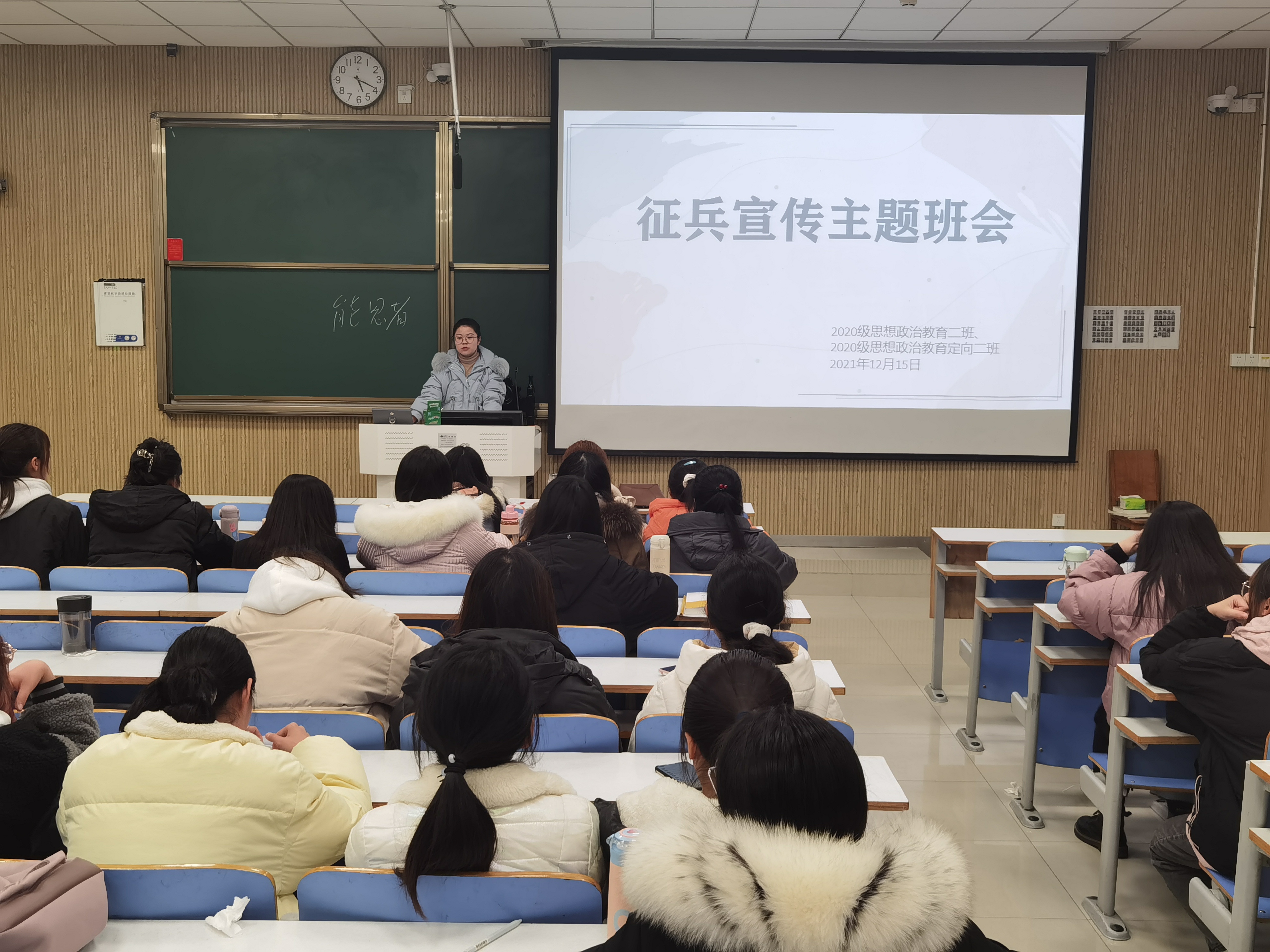 12月15日下午,beat365亚洲版官网2020级思想政治教育二班、定向二班在社科楼515教室召开征兵宣传主题班会。2020级思想政治教育二班、定向二班全体同学参与本次班会,辅导员高小佳出席会议并讲话。