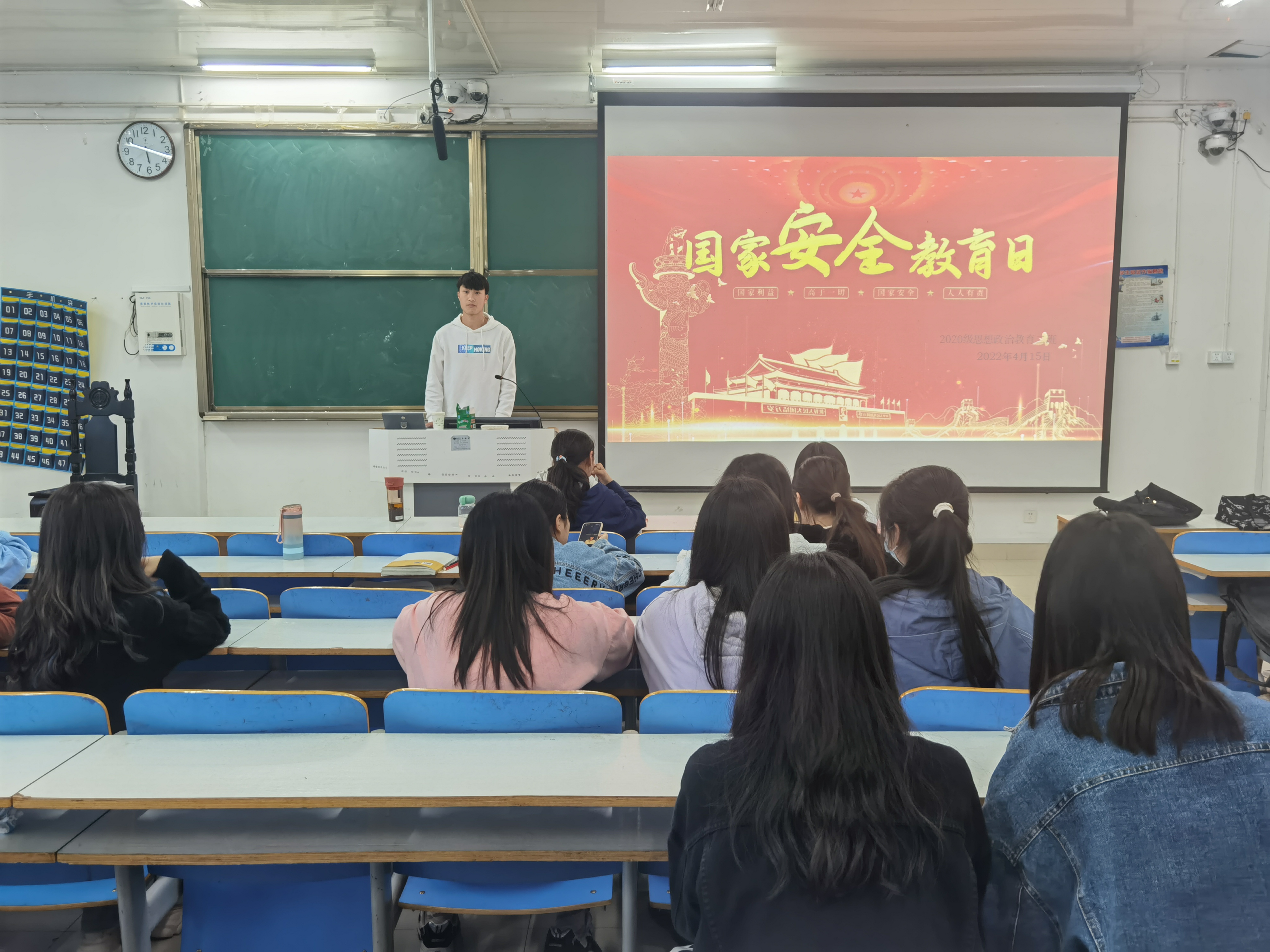 本次班会主要围绕什么是国家安全、当前国内国际形势、如何维护国家安全三个方面展开。班会伊始,陈宇航对国家安全的基本内涵作出介绍,并进一步指出,近年来,党和国家对国家安全教育的重视力度不断加码,各项工作不断推进,基层民众国家安全意识不断增强,2022年全国两会调查十大热词中,“国家安全”关注度位居第五位。随后,就当前国内国际形势背景,陈宇航指出,和平与发展仍然是当今时代的主题,同时国际上各领域的非传统安全因素逐渐增多,巩固并加强国家安全教育刻不容缓、势在必行。班会最后,陈宇航就如何维护国家安全对同学们提出要求。他表示,同学们要在思想上高度重视,增强国家安全意识,树立国家利益至上观念,在行动上主动与危害国家安全的行为作斗争,严守国家秘密,捍卫国家利益,为国家安全构筑青春屏障。