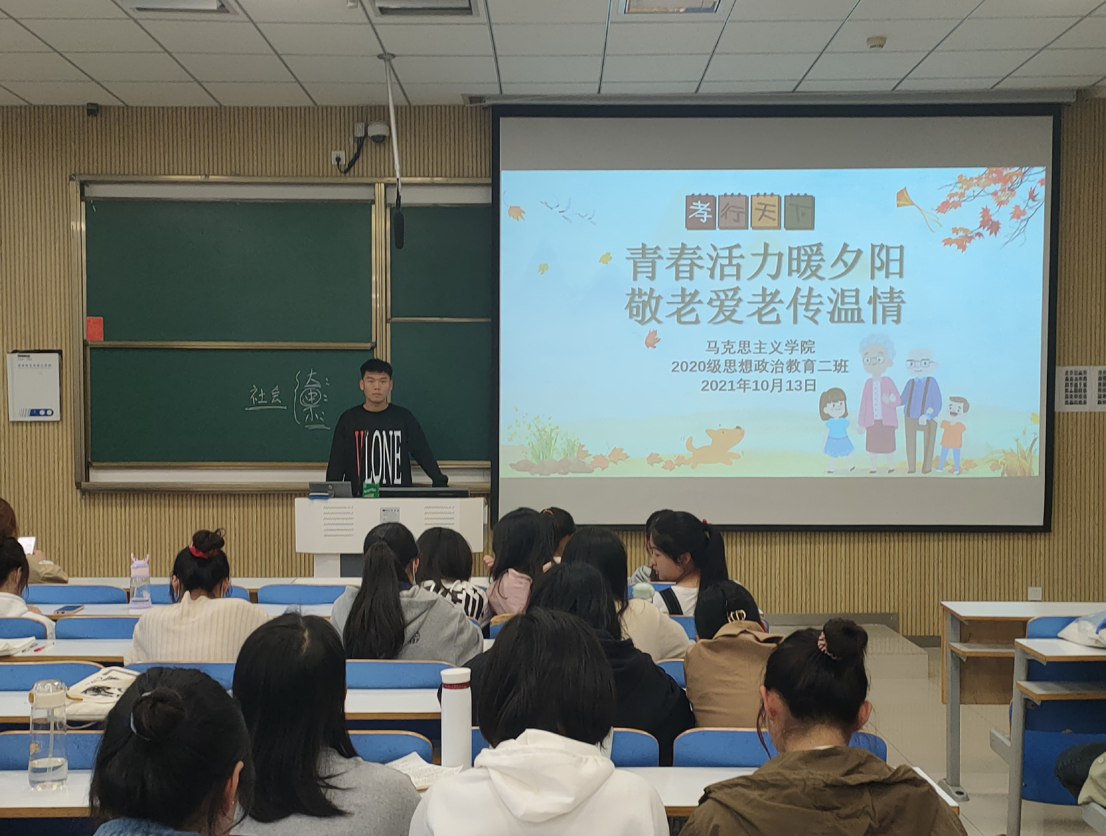 为弘扬孝老敬老的中华传统美德,10月13日下午,beat365亚洲版官网2020级思想政治教育二班、定向二班“青春活力暖夕阳,敬老爱老传温情”主题团课在社科楼515教室顺利开展。二班、定向二班全体团员共同参与本次团课。团课由程歌讲授。