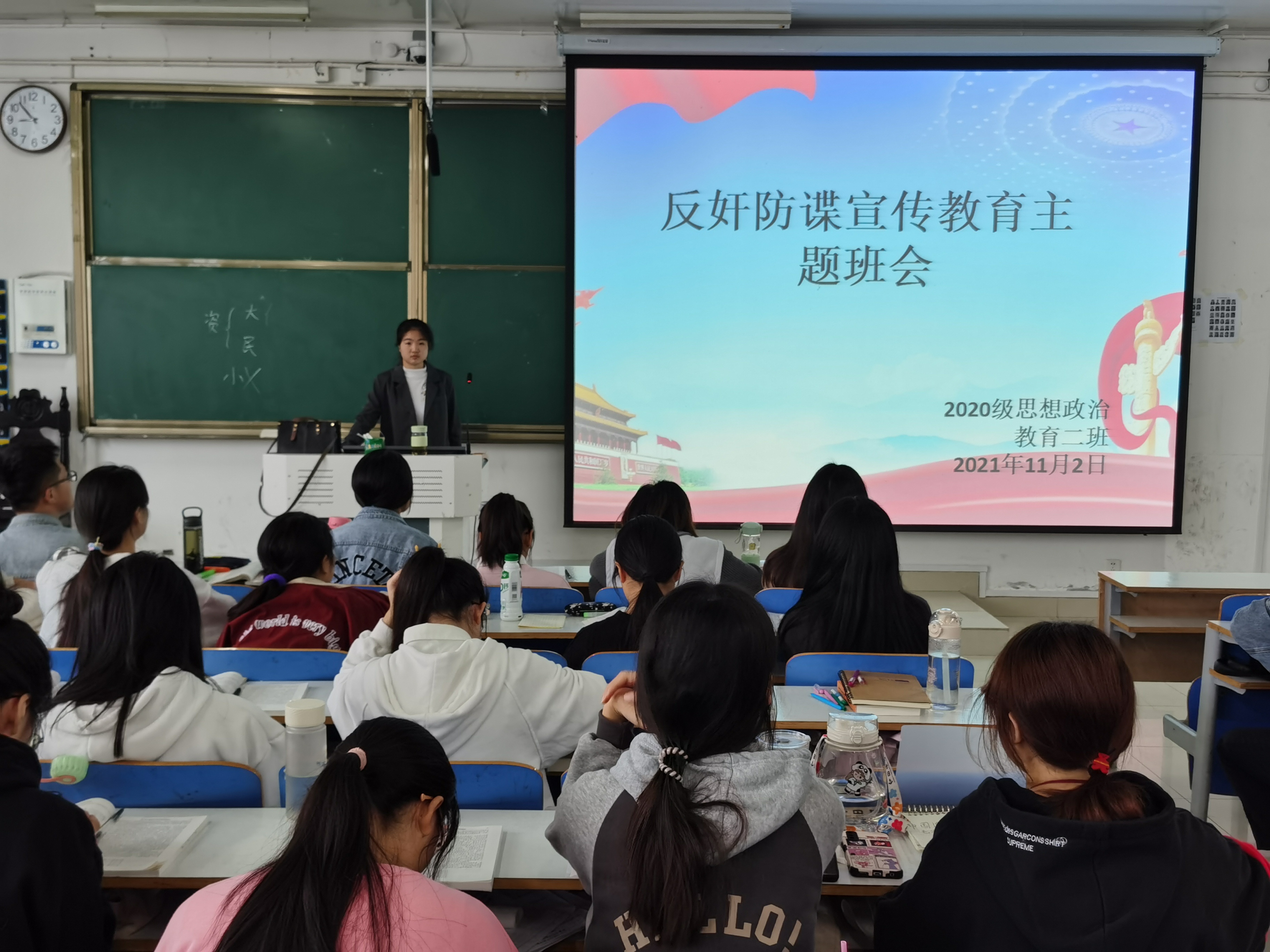 为进一步增强同学们的国家安全意识,11月2日上午,beat365亚洲版官网2020级思想政治教育二班、定向二班在社科楼516教室召开“反奸防谍”宣传教育主题班会。2020级思想政治教育二班、定向二班全体同学共同参与本次班会。班会由副班长孙雪主持。